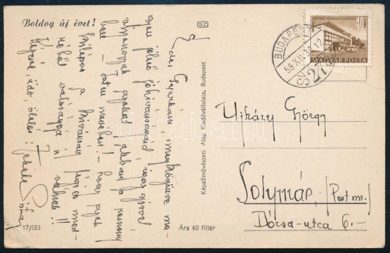 1958 Fekete István (1900-1970) író autográf képeslapja Ujházy György (1895-1971) forgatókönyvírónak költői képpel megírt jókívánsággal