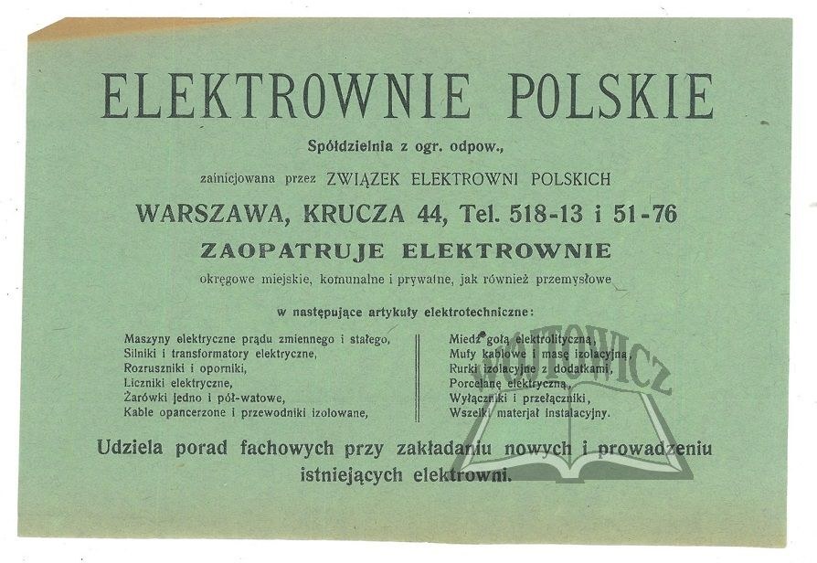 Spółdzielnia z ogr. odpow. zainicjowana przez Związek Elektrowni Polskich. B. m. i r. w. Wym.: 16 x 24 cm. Stan dobry.