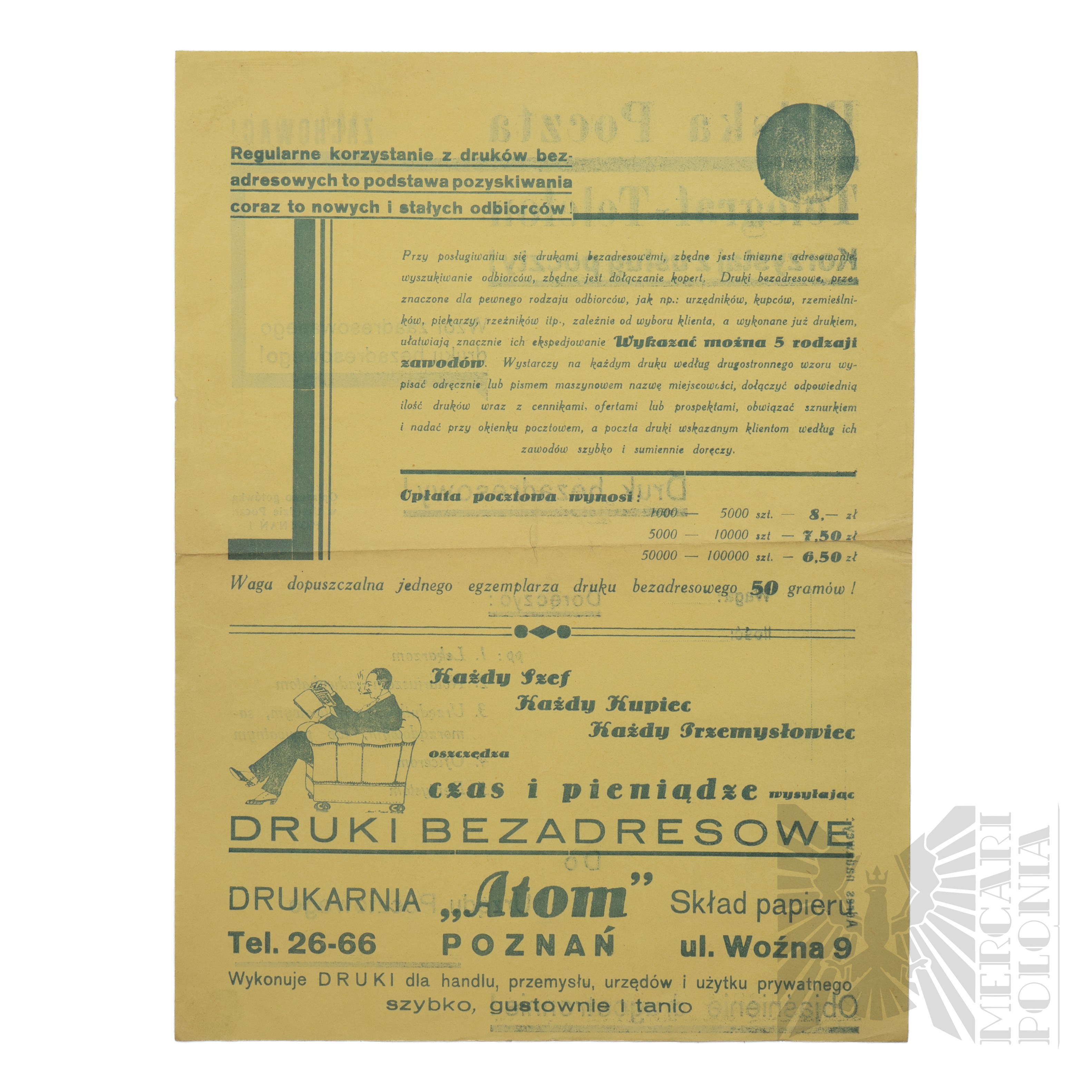 II RP- Ulotka Reklamowa Druki Bezadresowe Drukarnia “Atom” Skład Papieru Poznań