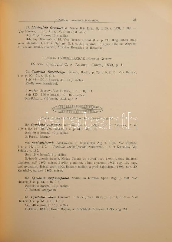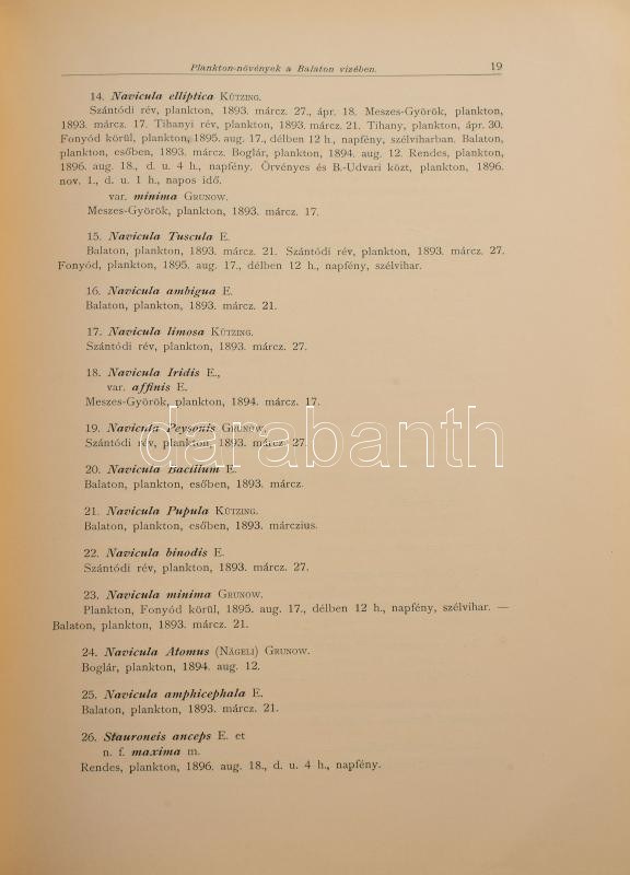 Istvánffi Gyula: A Balaton moszatflórája. Hozzákötve: Pantocsek József: A Balatoni kovamoszatok. Kiadja...