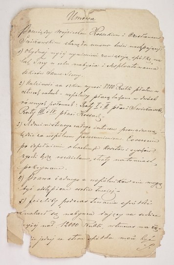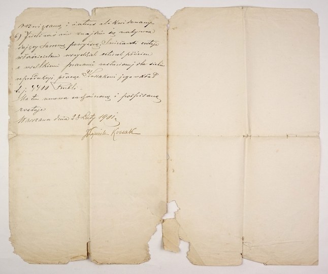 2. odręczne zobowiązanie C. Świeżawskiego do przekazania Ludwikowi Czarnowskiemu 8.800 rubli w czterech równych ratach, dat. 24 II 1901 w Warszawie i – na tym samym arkuszu – pokwitowanie L. Czarnowskiego przyjęcia całej kwoty (XII 1901)