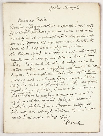 6. list Franciszka Ejsmonda z Tow. Zachęty Sztuk Pięknych do C. Świeżawskiego z pytaniem o możliwość wystawienia „Somosierry” w Krakowie, zgody takiej udzielił uprzednio Kossak, dat. 14 X 1902 w Warszawie
