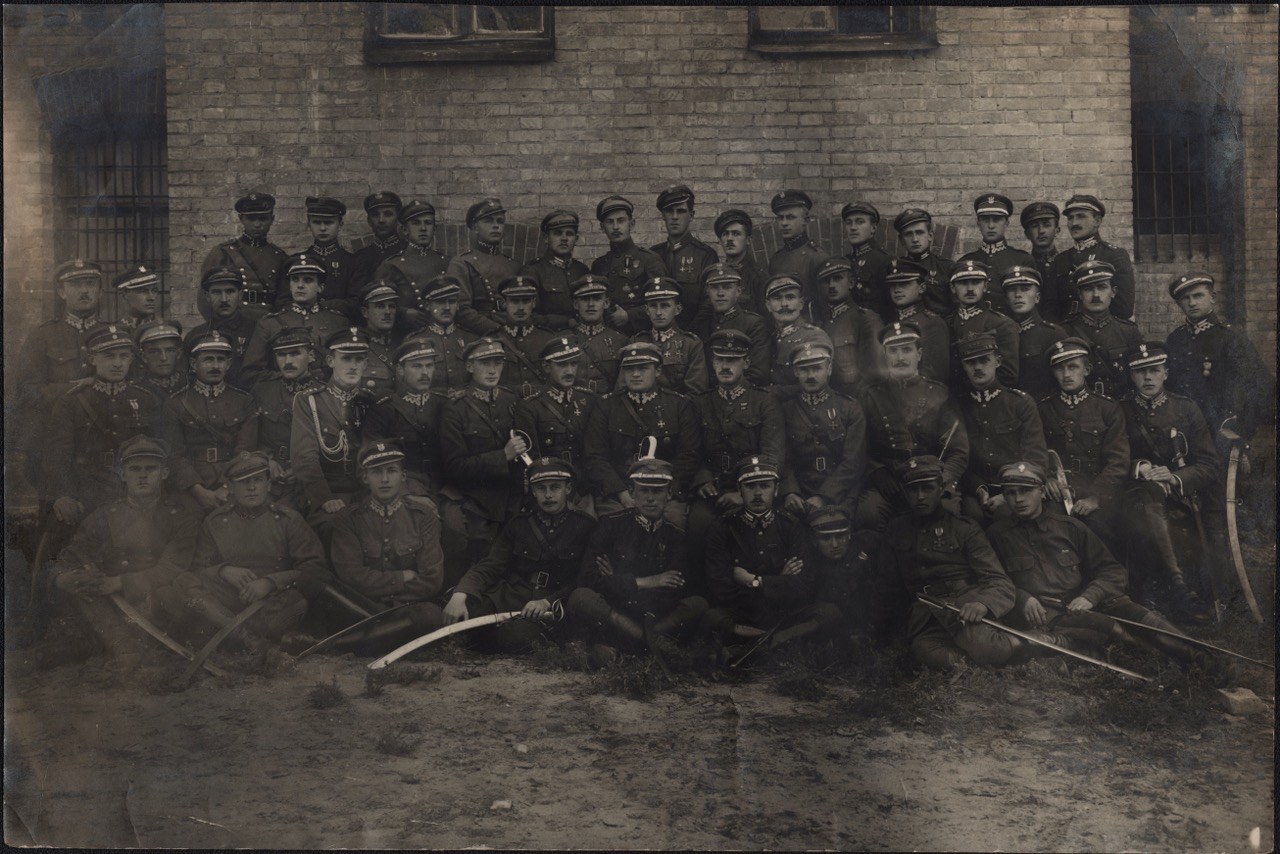 [3 Pułk Szwoleżerów Mazowieckich im. Pułkownika Jana Kozietulskiego] Korpus oficerski i podoficerski. W centrum dowódca Pułku podpułkownik Stefan Kulesza.