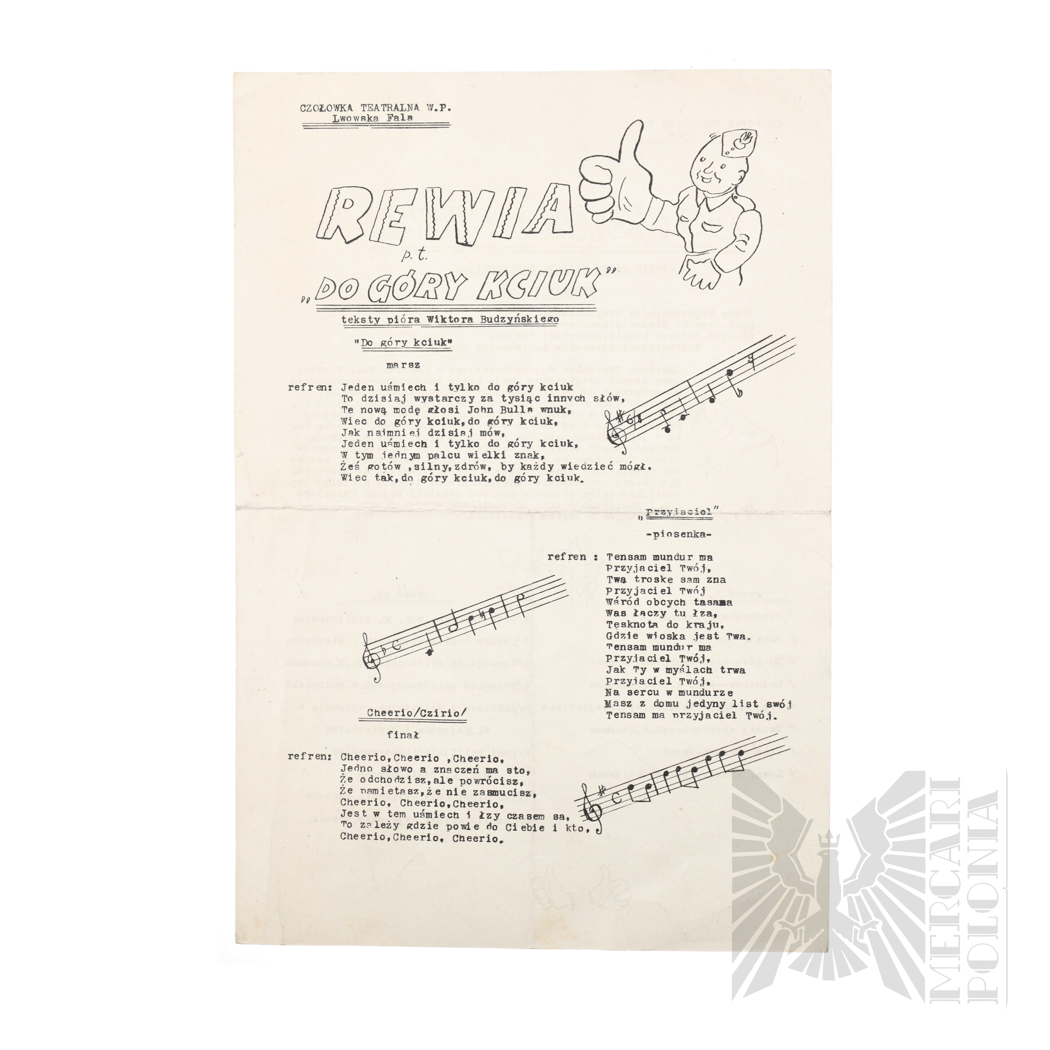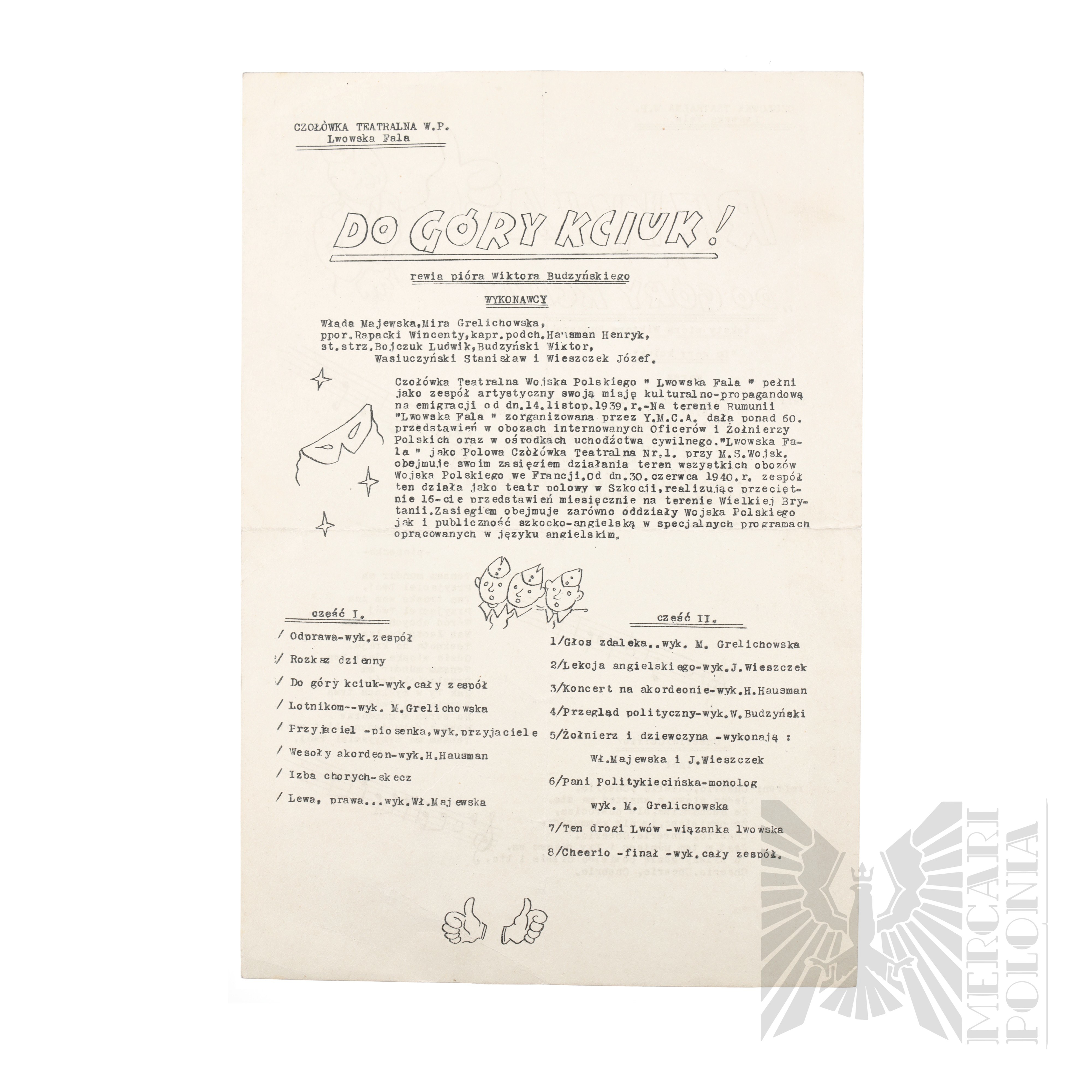 Program przedstawienia teatralnego “Do góry Kciuk!” napisana przez Wiktora Budzyńskiego w wykonaniu Czołówki Teatralnej Wojska Polskiego Lwowska Fala, który niejednokrotnie występował też dla żołnierzy 1 Dywizji Pancernej, natomiast na ślubie samego Wiktora Budzyńskiego i Włady Majewskiej, która występowała w Lwowskiej Fali, świadkiem był Generał Stanisław Maczek.