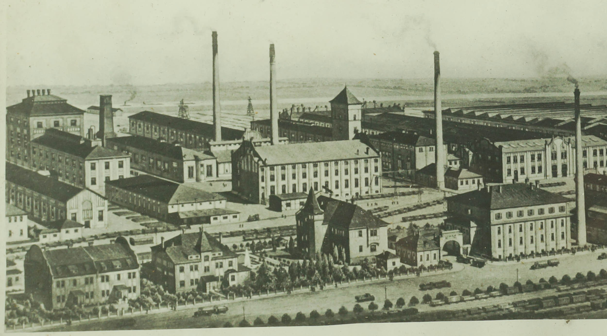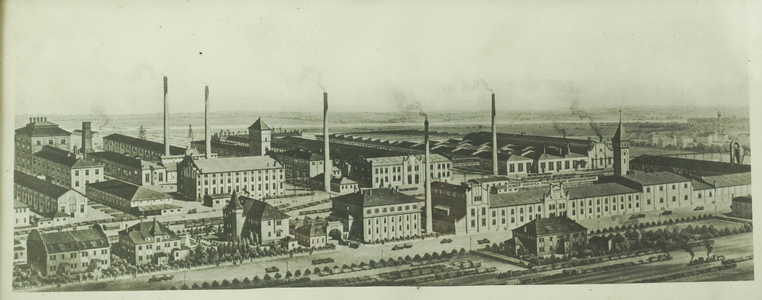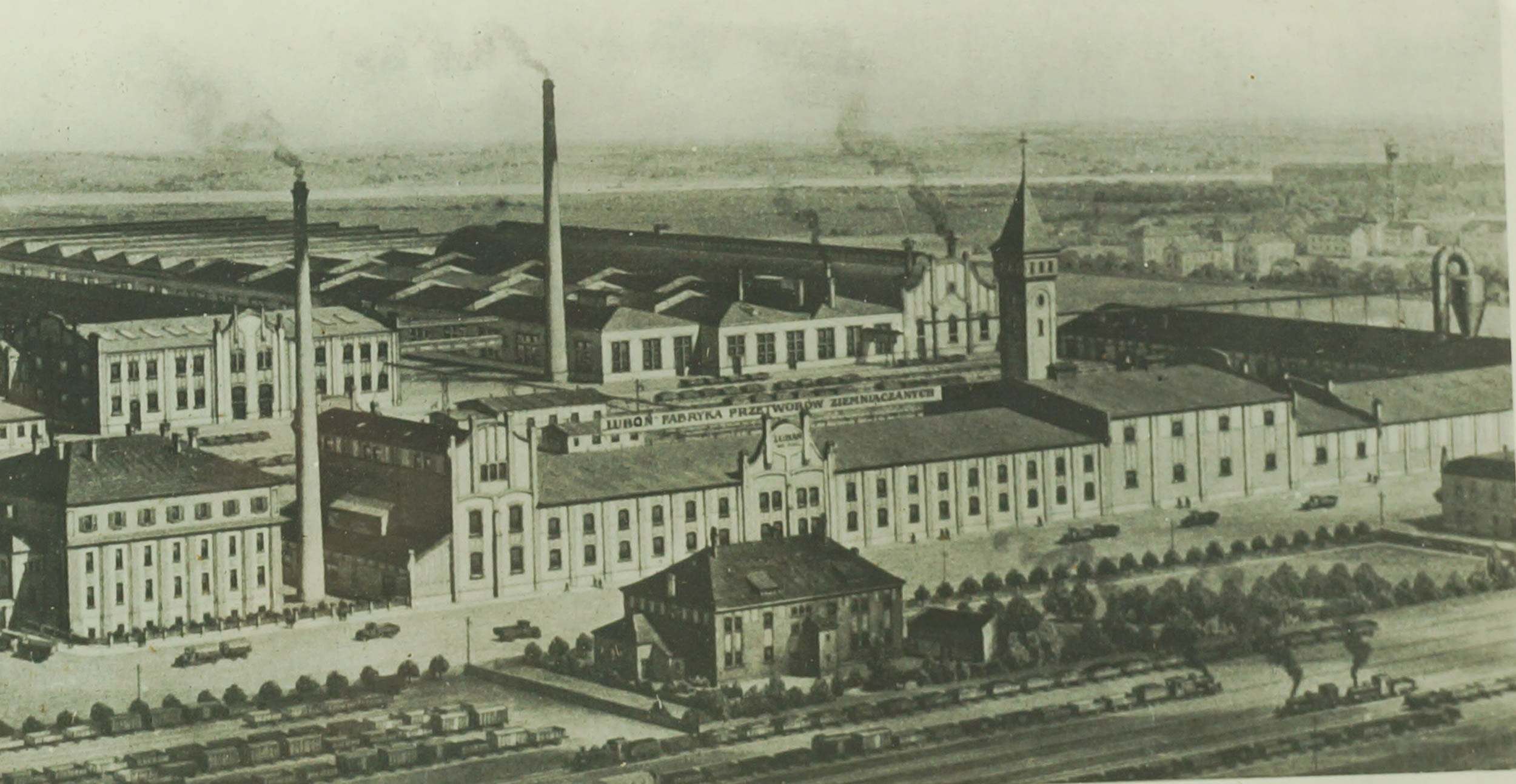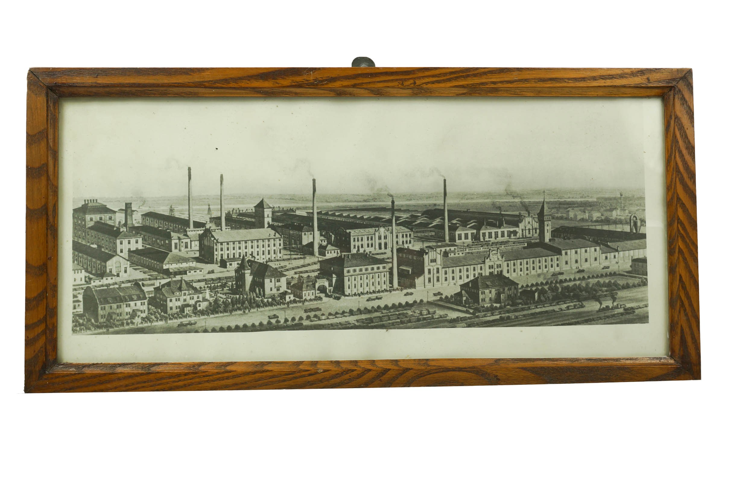 Luboń Fabryka Przetworów Ziemniaczanych duża , oprawiona panorama fabryki, f. 43x20,5cm, rama drewniana, szkło, [AW IV]