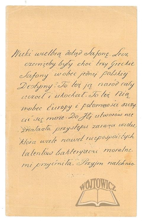 List do poetki Deotymy (Jadwigi Łuszczewskiej). Dat. Kraków 25 XI 1887 r. Bifolium. Wym. 20,5 x 12,8 cm.
