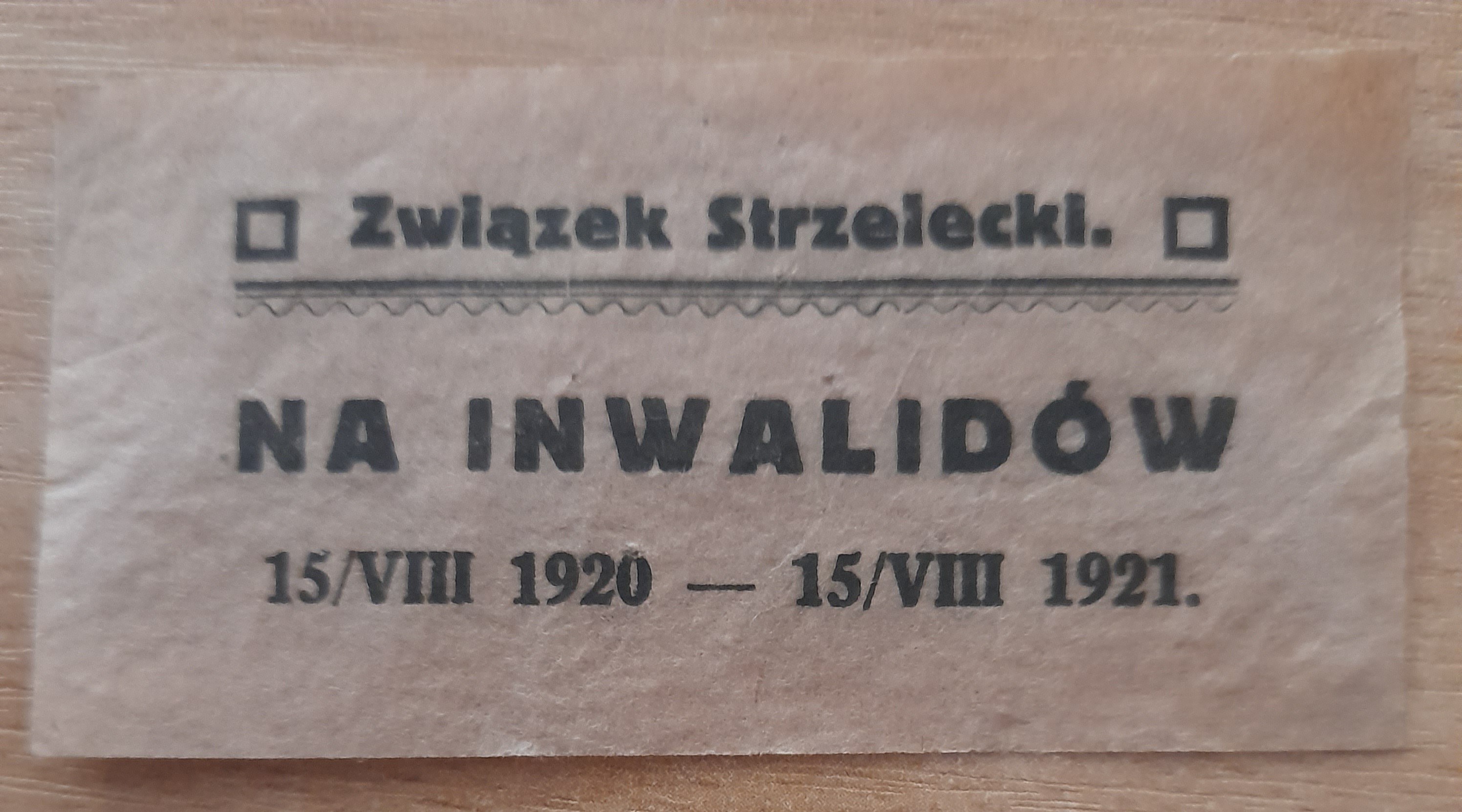 Znaczek kwestarski "Związek Strzelecki Na inwalidów 15/VIII 1920 - 15/VIII 1921."