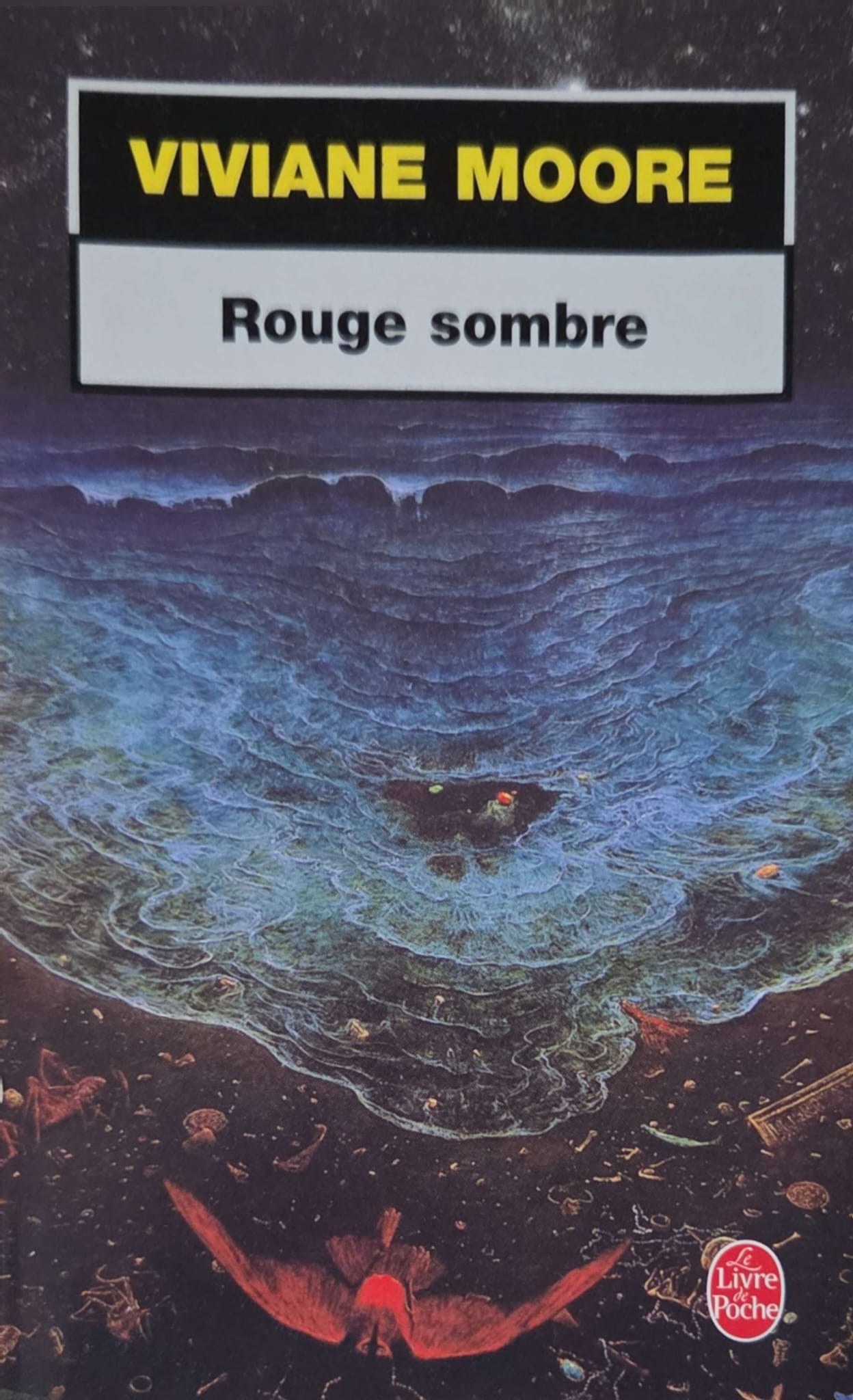 Okładka książki "Rouge sombre" autorstwa Vivianne Moore, wydana we Francji, kolekcja Le Livre de poche.