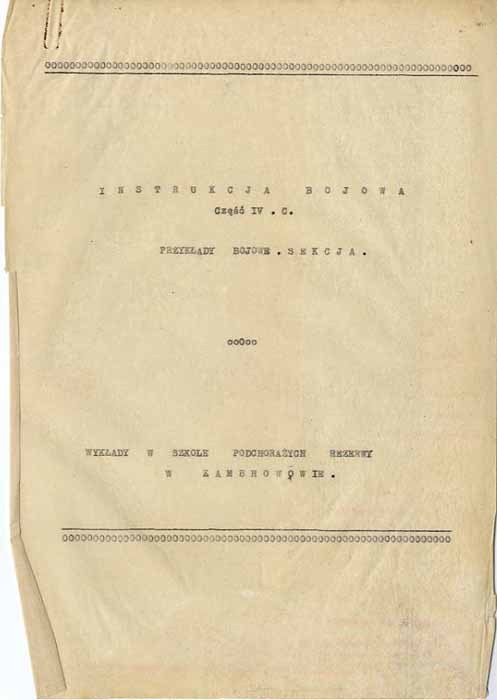 Tytuł: Instrukcja bojowa. Cz. IV. C.: Przykłady bojowe. Sekcja. Wykłady w Szkole Podchorążych Rezerwy w Zambrowie
