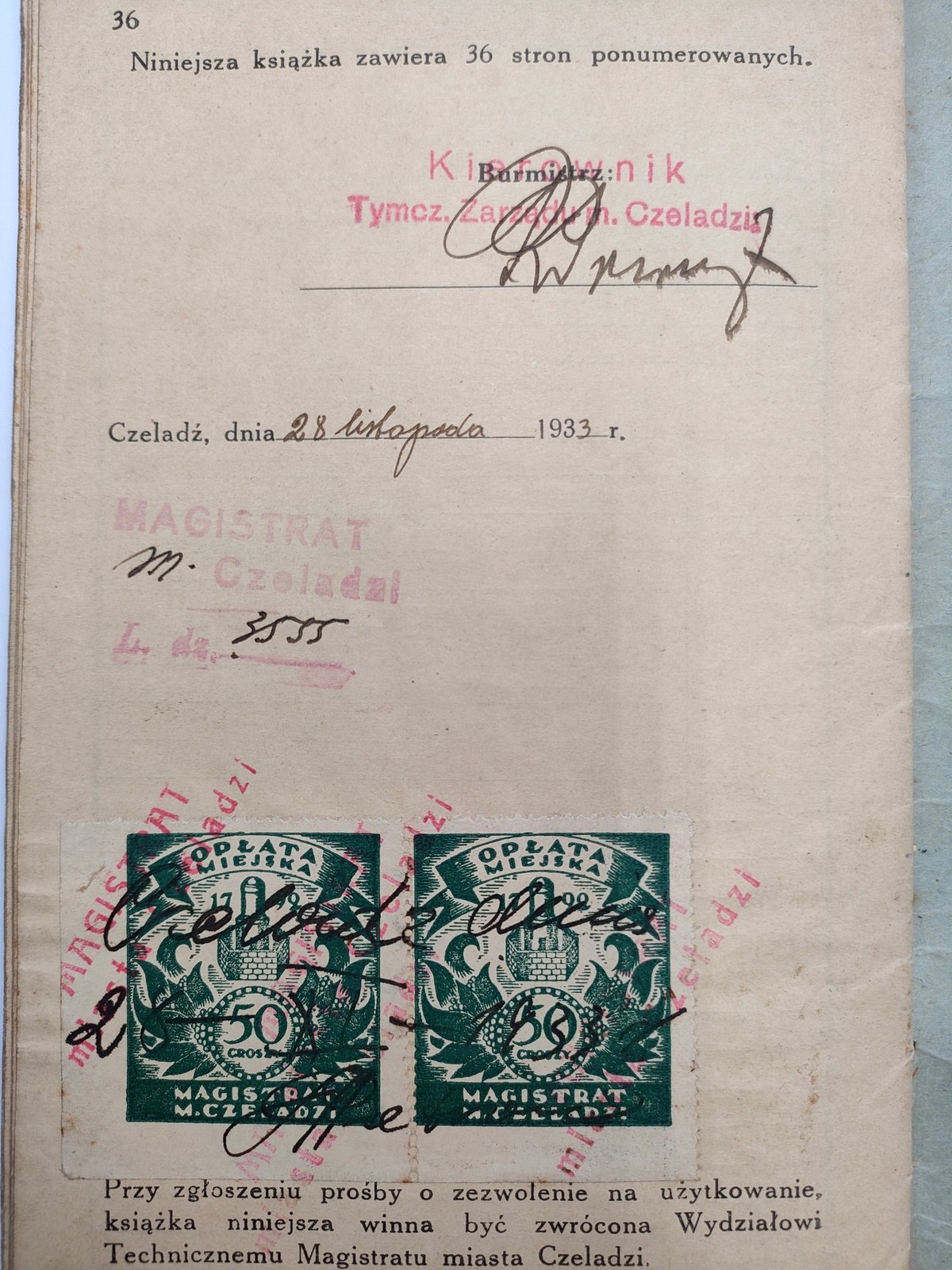 Czeladź - Książka kontroli budowlanej - Wydział techniczny Magistratu Miasta - 1933