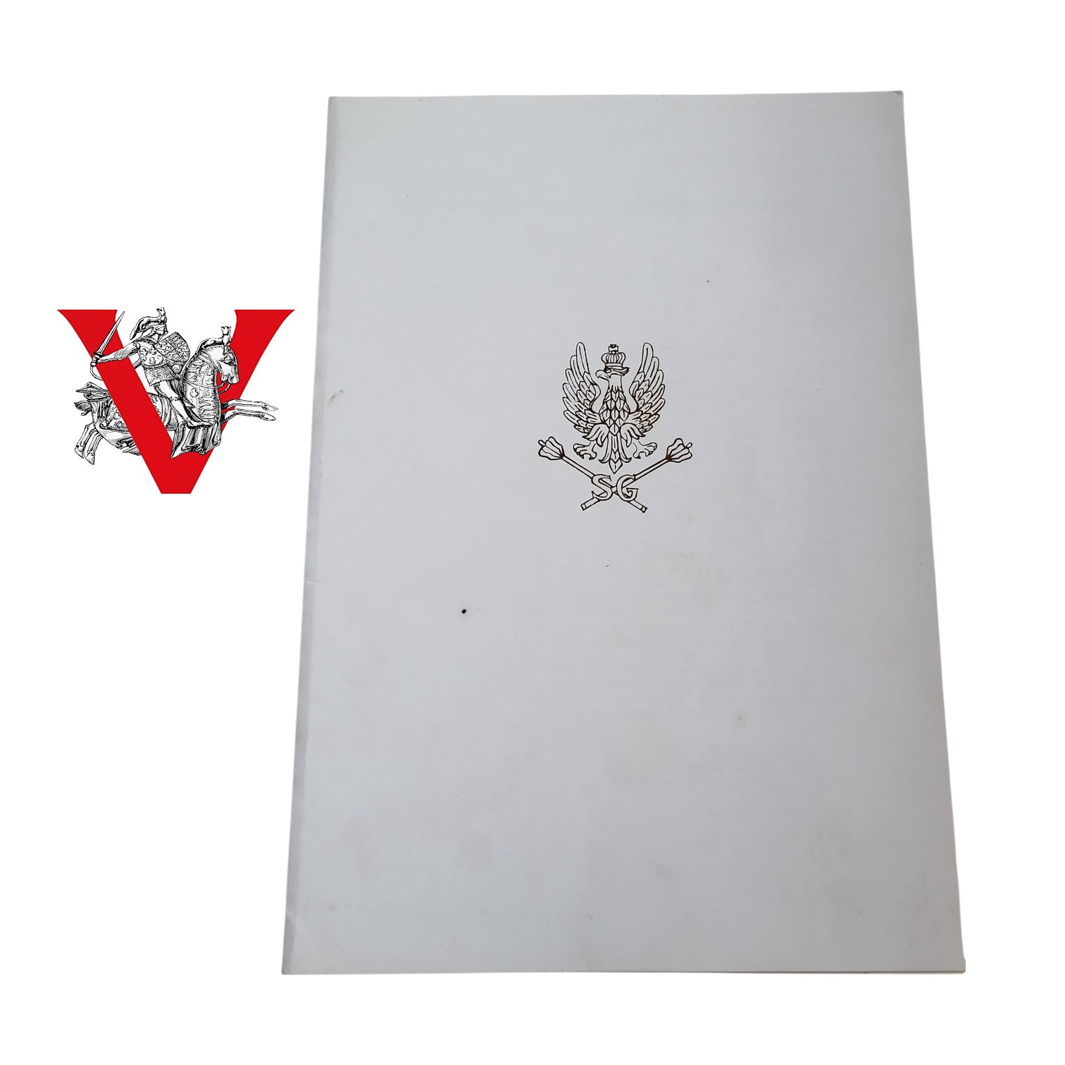 Dokument w teczce z nadrukiem orła i skrzyżowanych mieczy – w bardzo dobrym stanie zachowania, kompletny i czytelny.