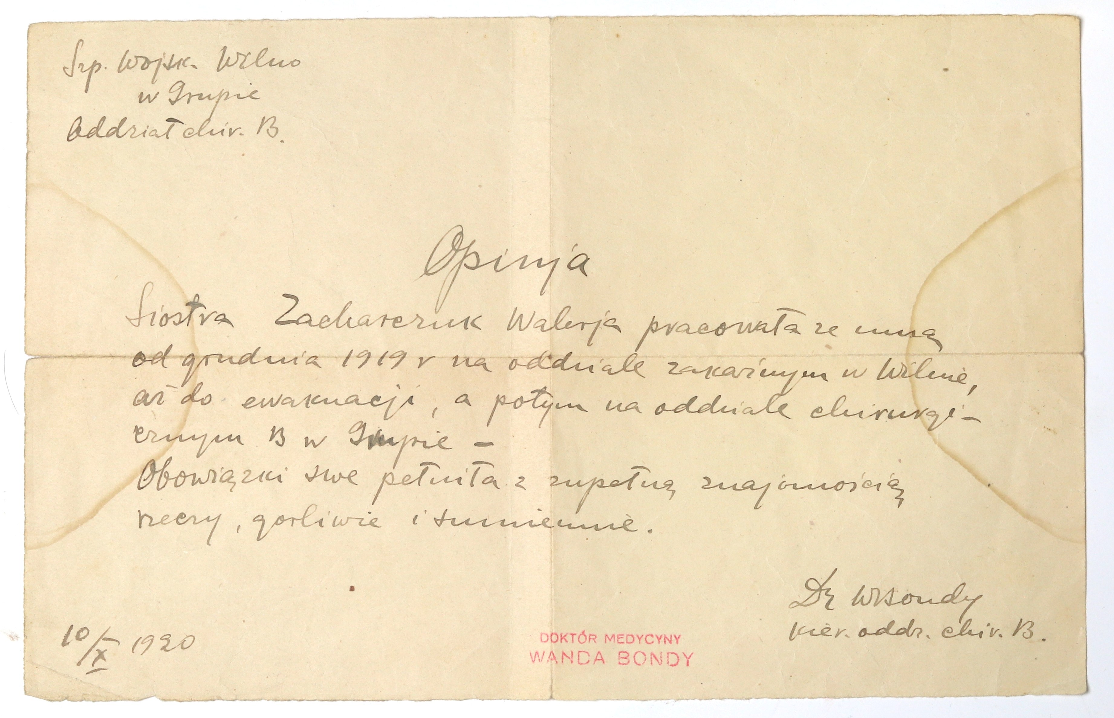 Ciekawy dokument z okresu wojny polsko-bolszewickiej.