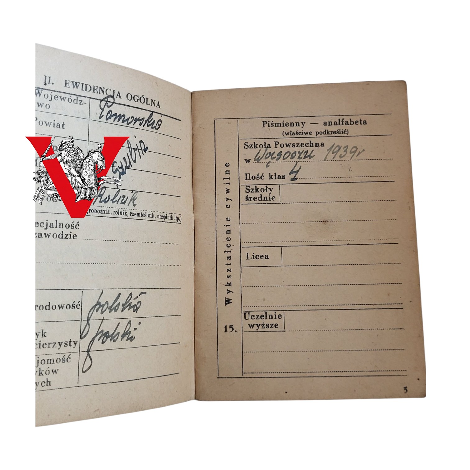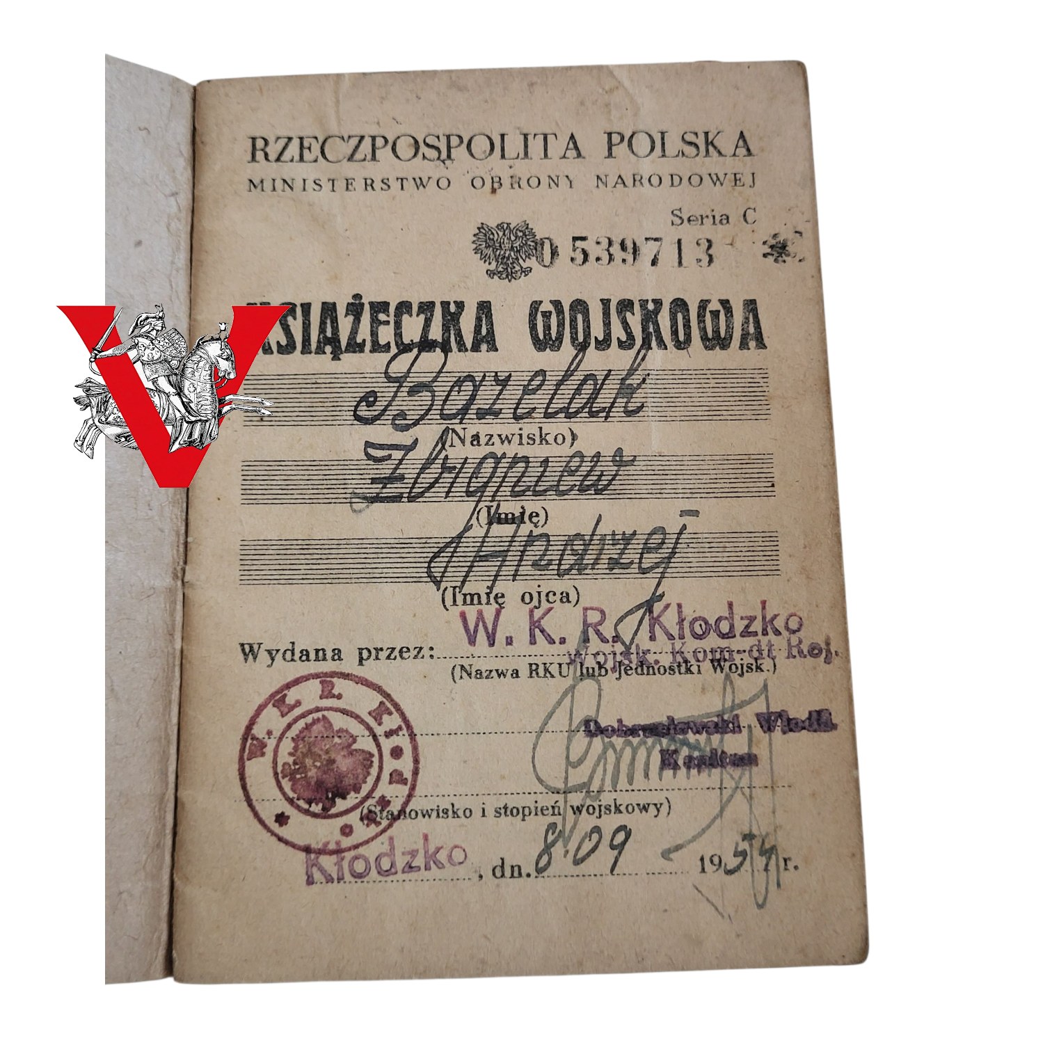 Książeczka Wojskowa z bardzo ciekawymi wpisami.