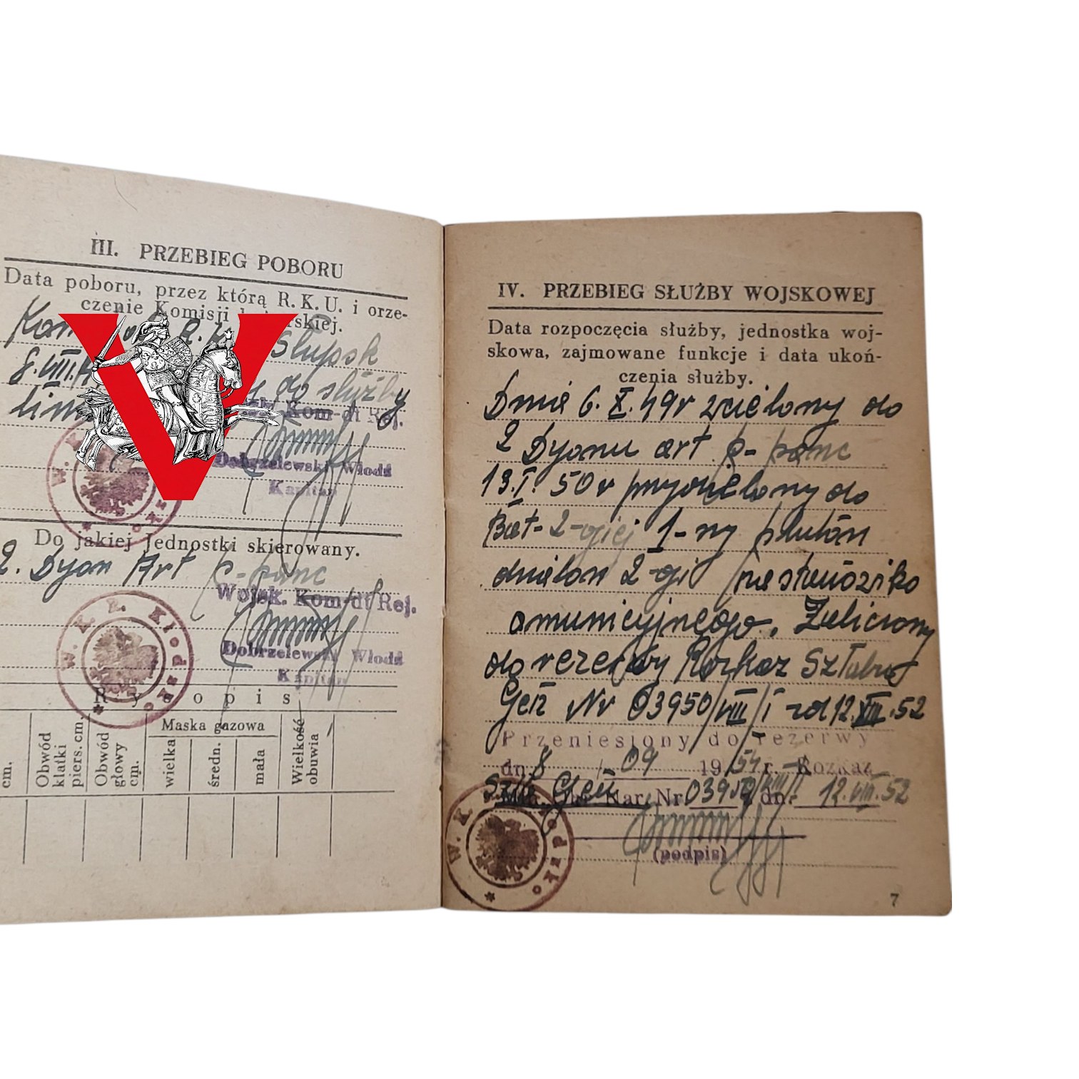 Książeczka Wojskowa, Artyleria, Dywizjon Artylerii PPanc, Kłodzko, lata 40-50