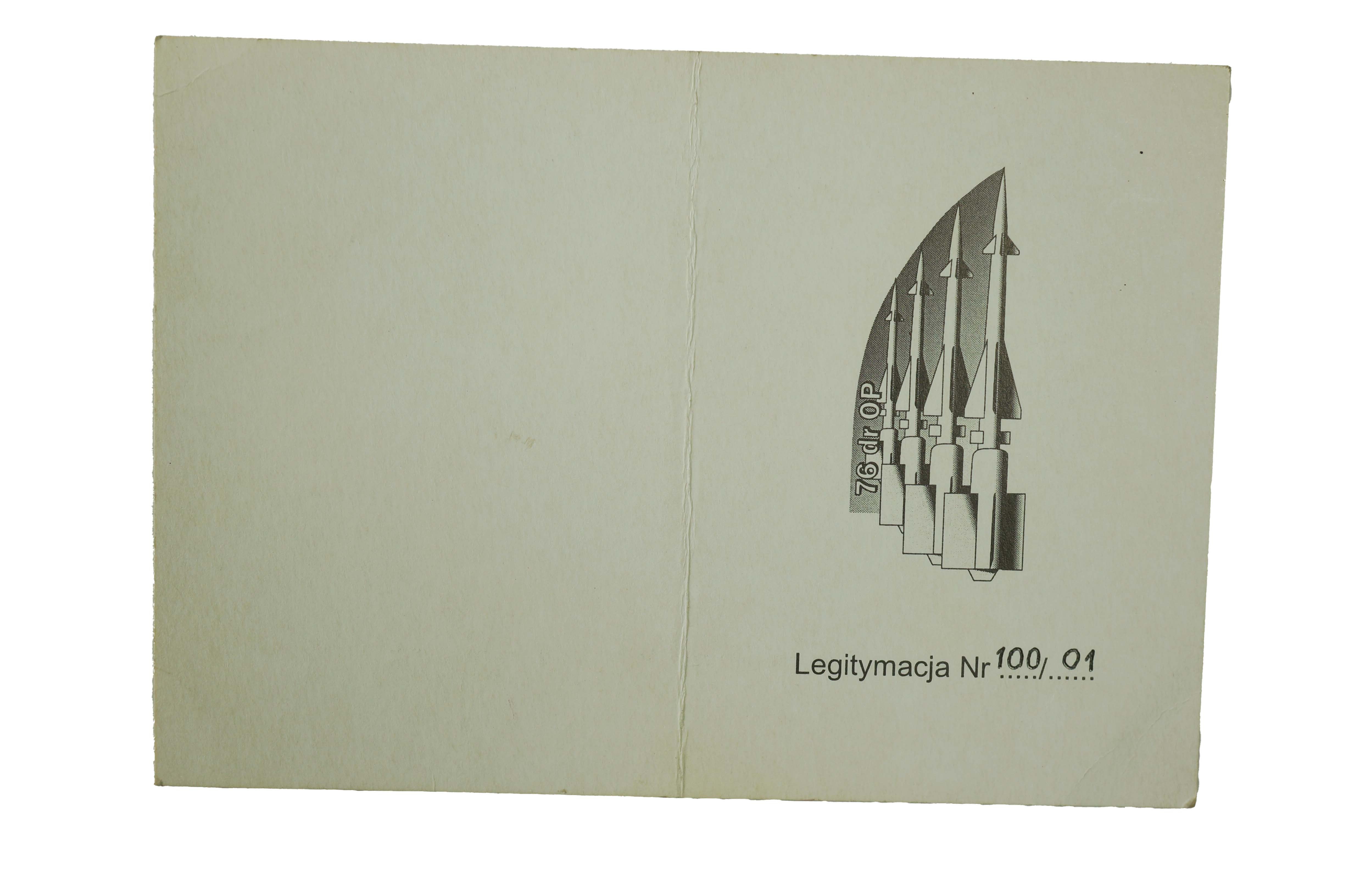 Legitymacja Odznaka Pamiątkowa z okazji dwudziestej rocznicy powstania 76 Dywizjonu Rakietowego Obrony Powietrznej, f. 7,5x10,5cm
