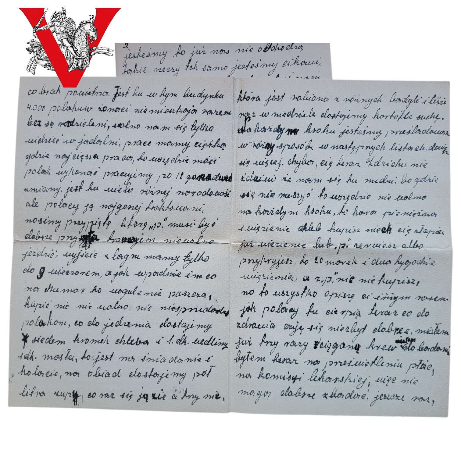 Oryginalny, niezwykle poruszający list z 1943 roku, wysłany z niemieckiego obozu pracy przymusowej w Lipsku (Leipzig) do Stalowej Woli. Autorem jest polski robotnik przymusowy, który w swoim liście do bliskich opisuje tragiczne realia codziennego życia pod niemieckim nadzorem.
