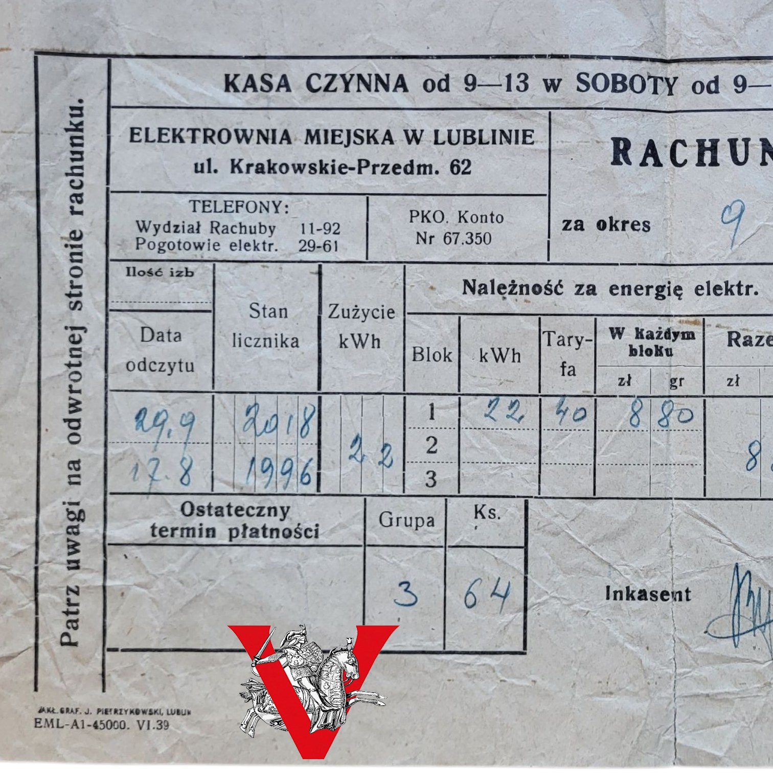 Lublin, Kampania Wrześniowa, Rachunek za Prąd zapłaconY 29.09.1939 !!