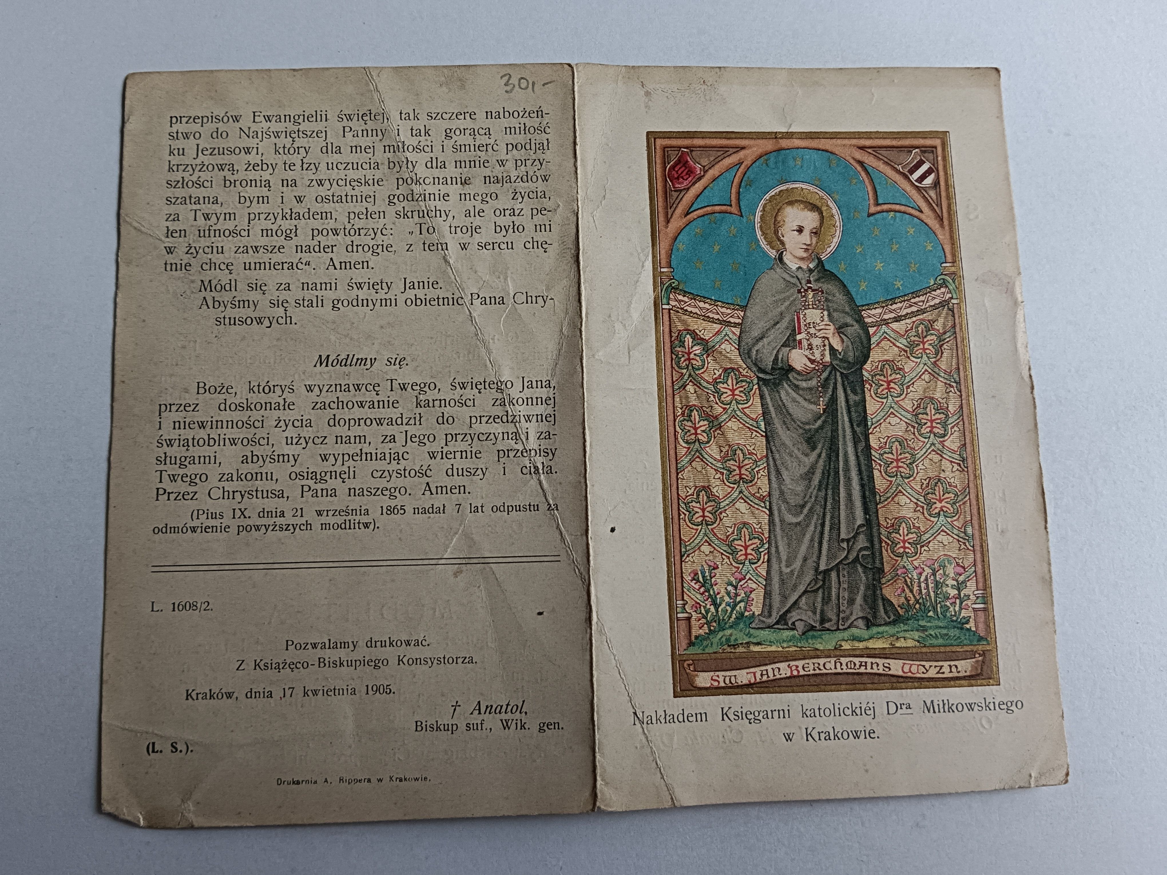 MODLITEWNIK ŚW JAN BERCHMANS T. J. KRAKÓW 1905 R, KS ANATOL