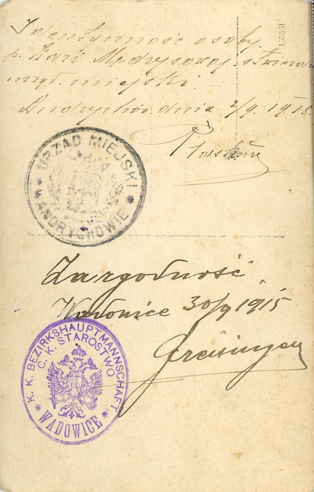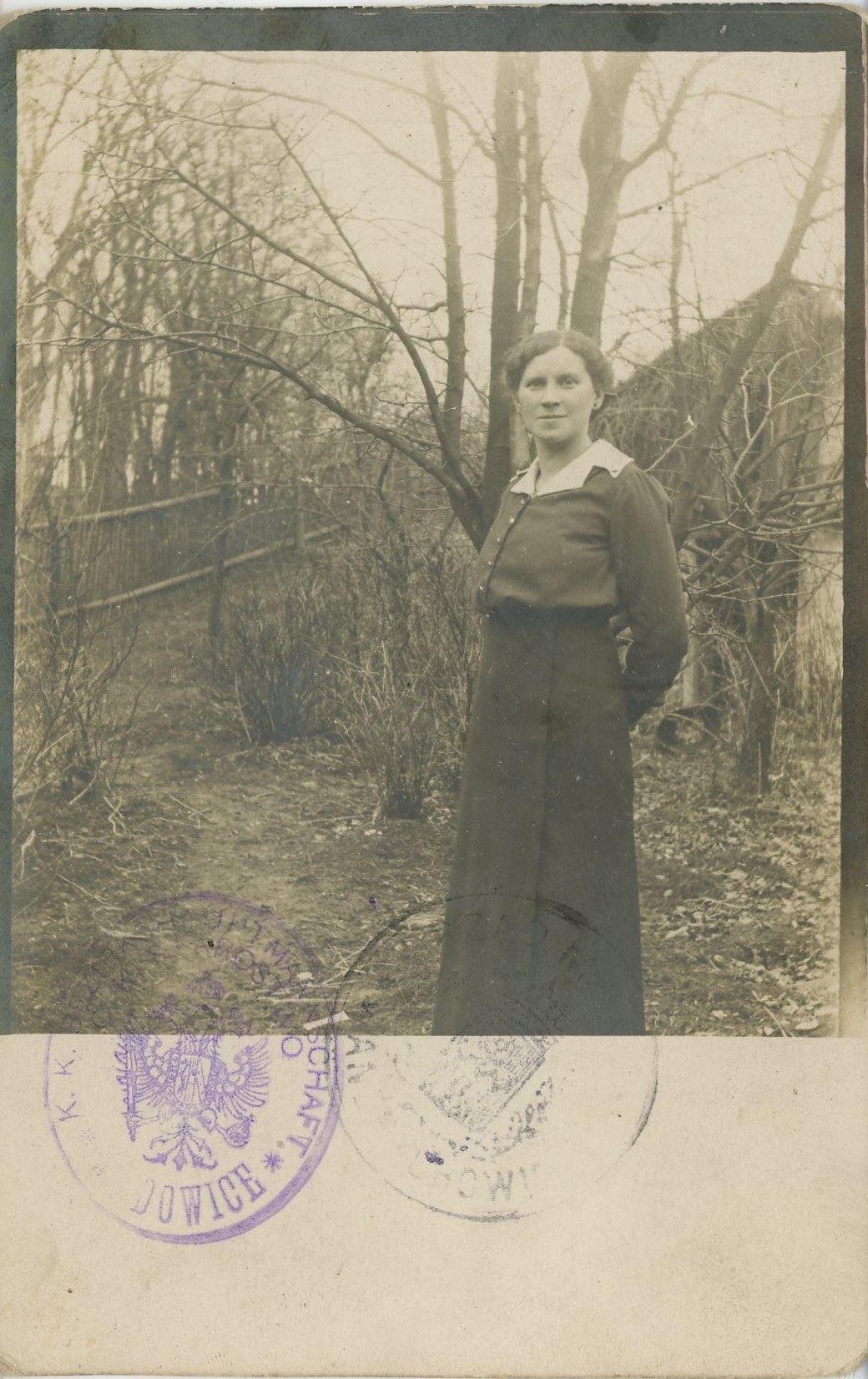 Na fot. pocztówkowej zapisy i pieczęcie identyfikujące osobę. Wym.: 9 x 14 cm. Stan dobry.