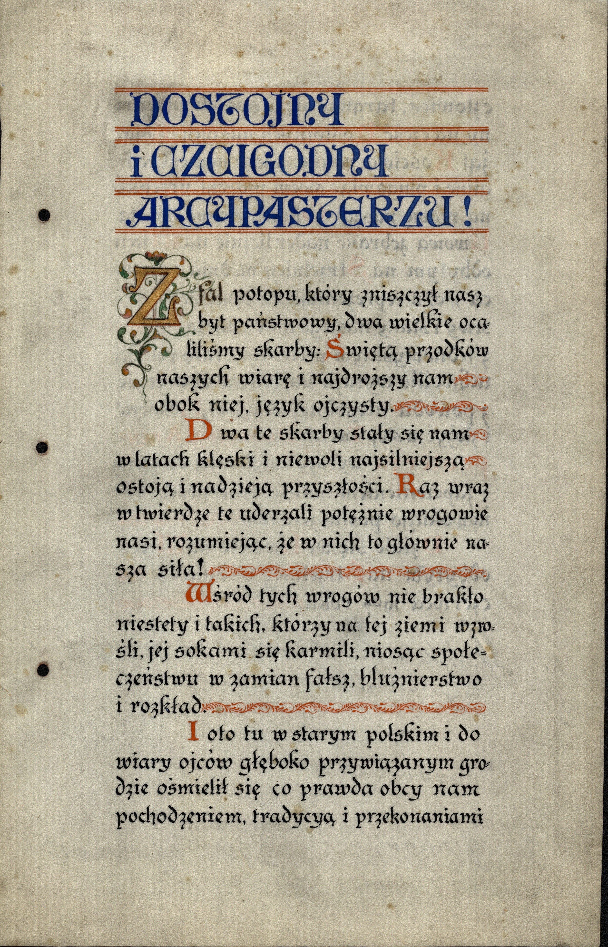 Towarzystwo Strzeleckie we Lwowie] Adres ku czci Abp Józefa Bilczewskiego, w obronie przed atakami czasopisma "Monitor", Lwów, Strzelnica Miejska, 9 VI 1907 r.
