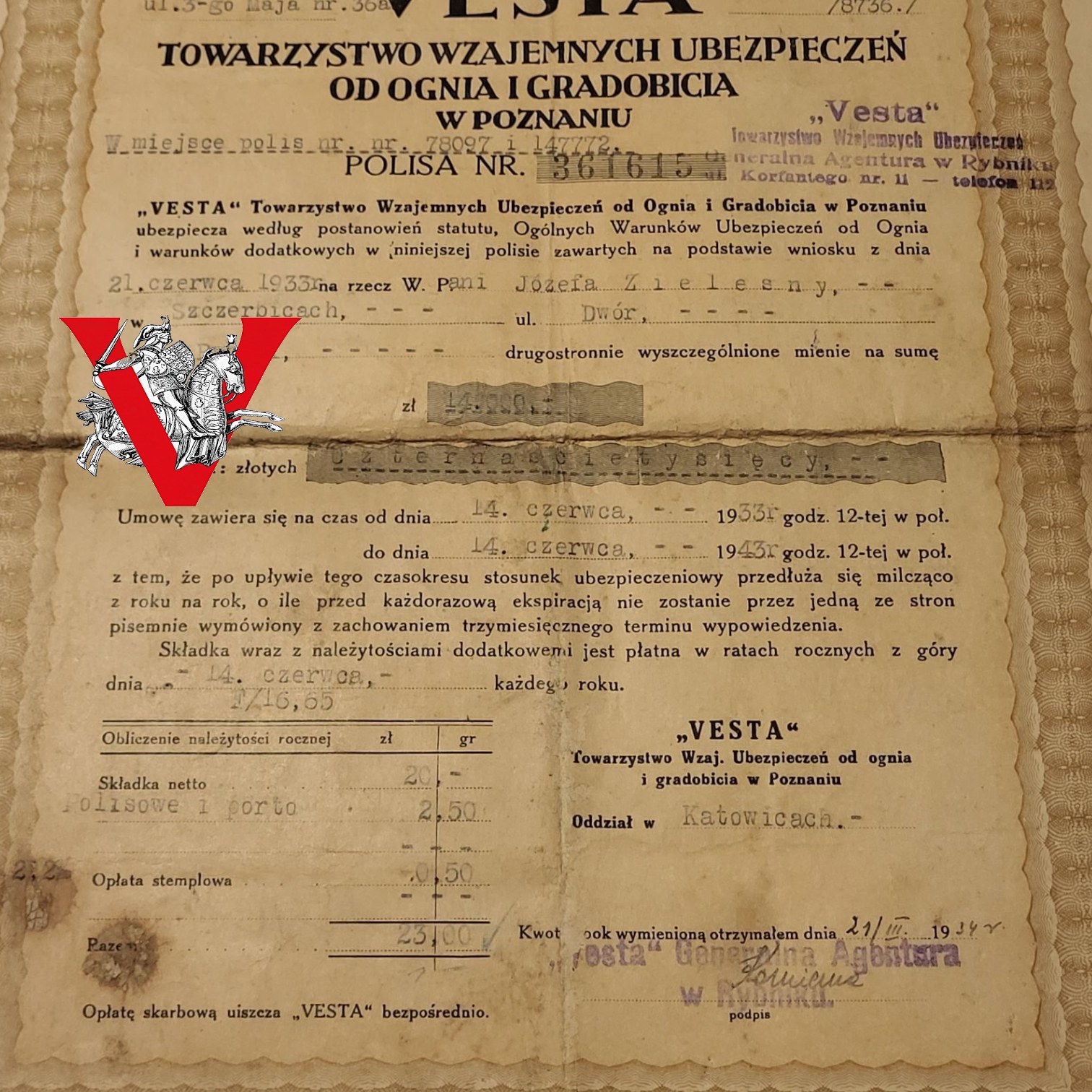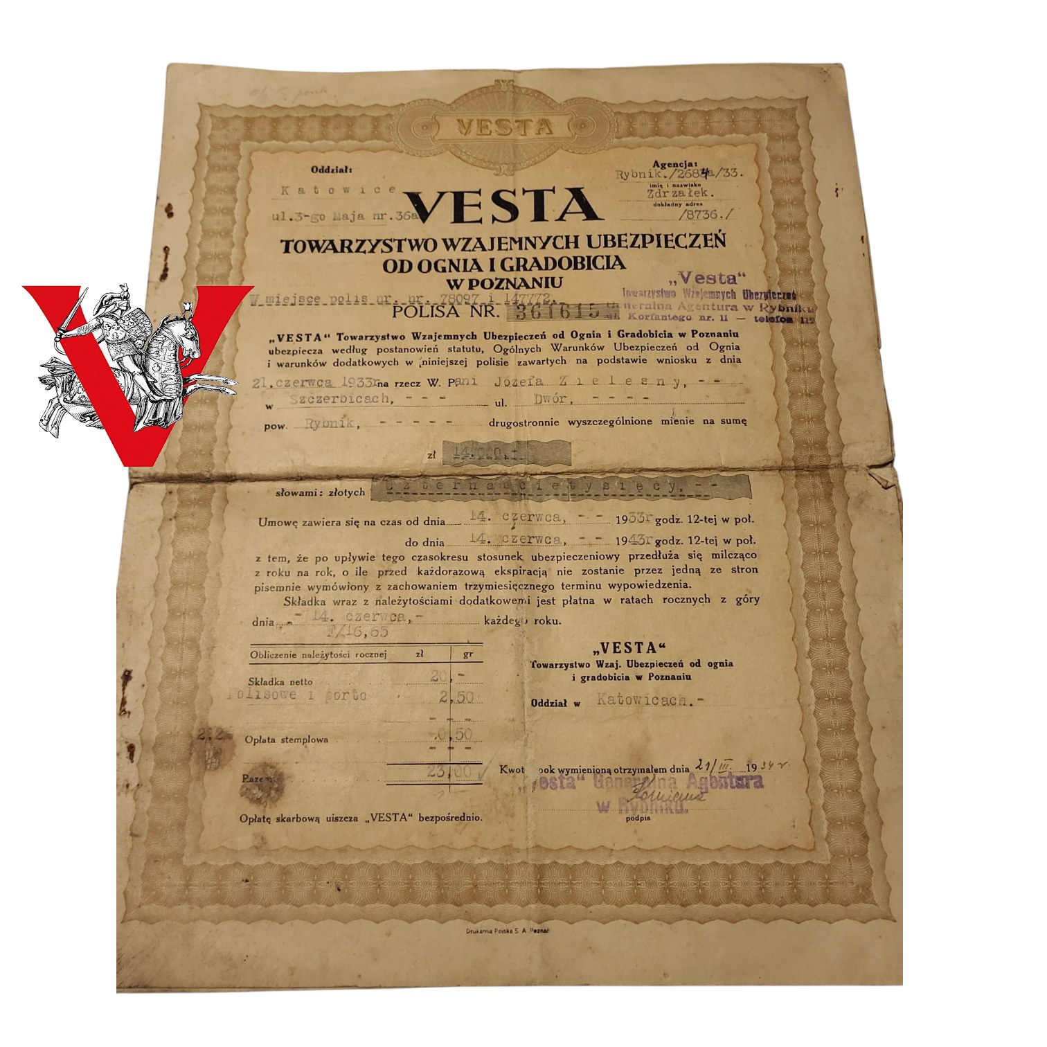 VEST POZNAŃ, Polisa 1934 rok, Rybnik, Szczerbice Dwór
