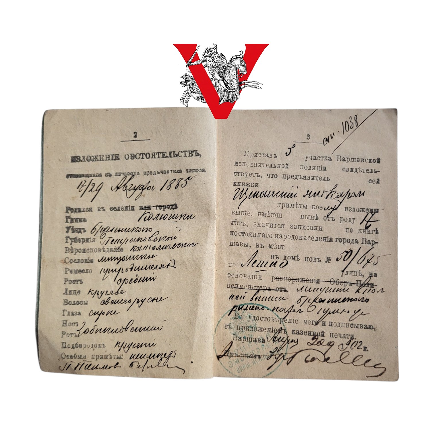 Dokument Tożsamości, Warszawa, wydrukowany w drukarni głównego Policmajstra.