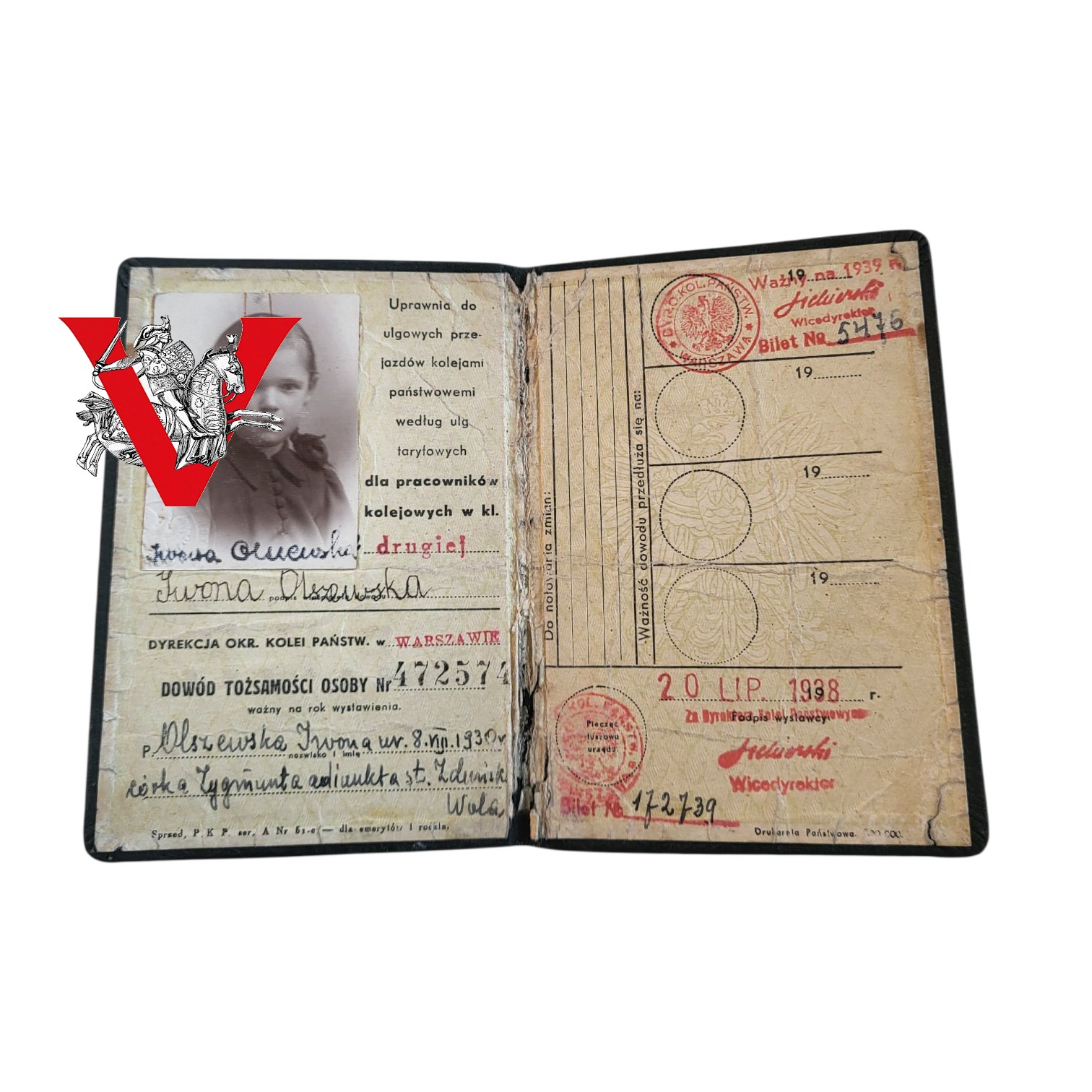 Kolejowy Dokument Tożsamości z 1938 ważny do roku 1939.