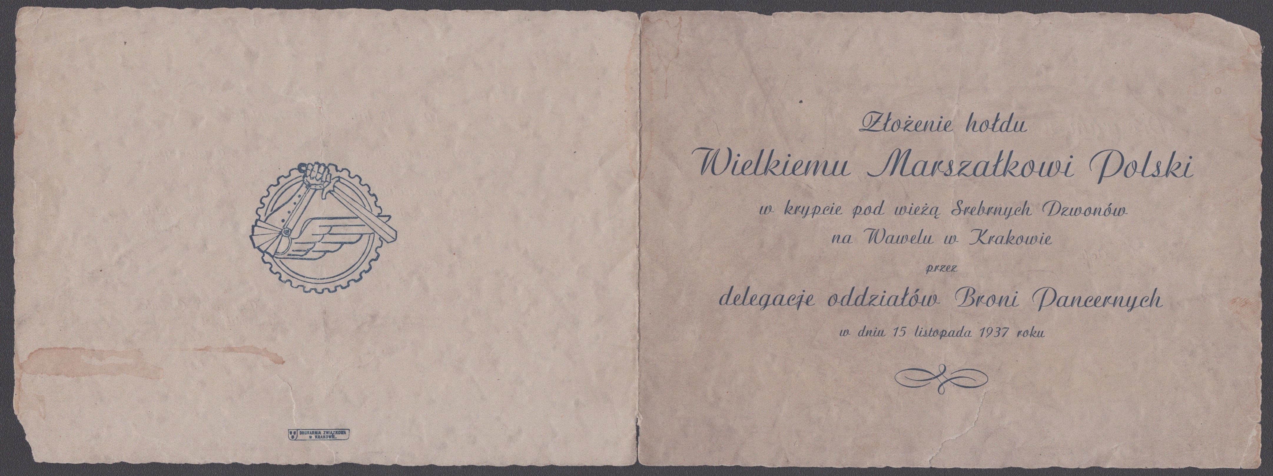 Wojska Pancerne] Złożenie hołdu Wielkiemu Marszałkowi Polski w krypcie pod wieżą Srebrnych Dzwonów na Wawelu w Krakowie przez delegacje oddziałów Broni Pancernej w dniu 15 listopada 1937 roku.