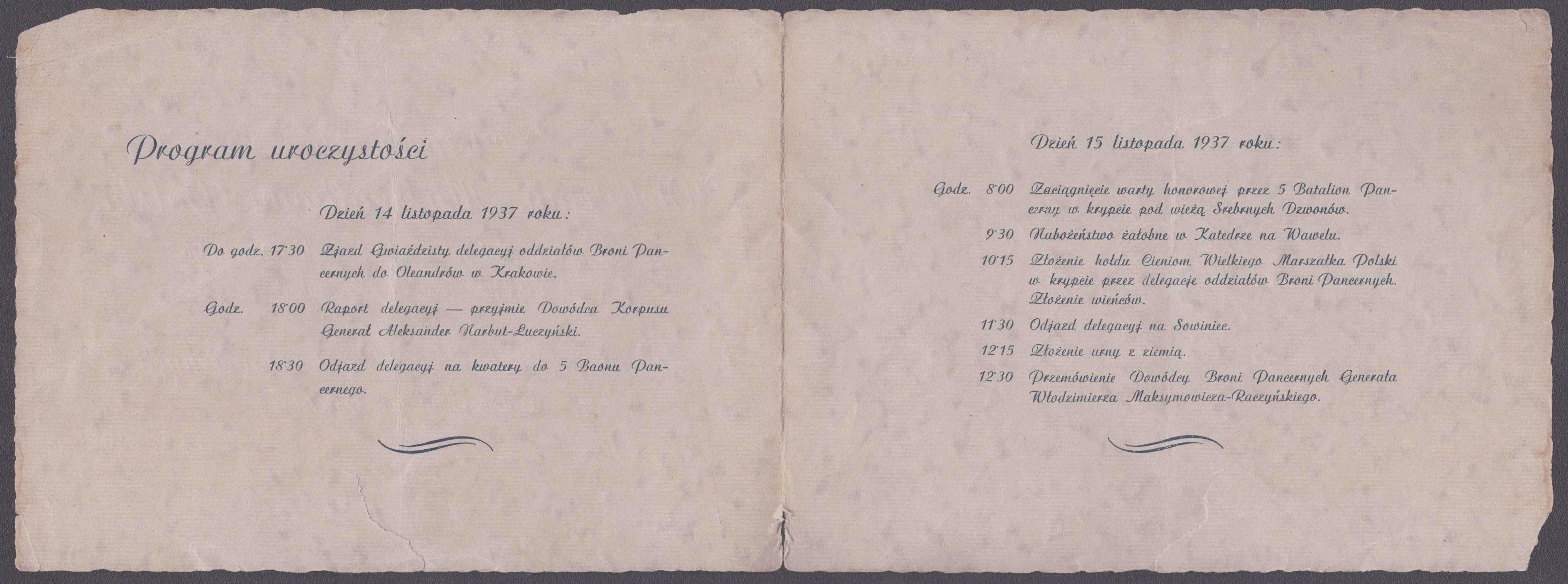 W programie m. in. Zaciągnięcie warty honorowej przez 5 Bat. Pancerny, Nabożeństwo na Wawelu, złożenie urny z ziemią na Sowińcu, przemówienie Dowódcy Broni Pancernych Generała Włodzimierza Maksymowicza-Raczyńskiego.