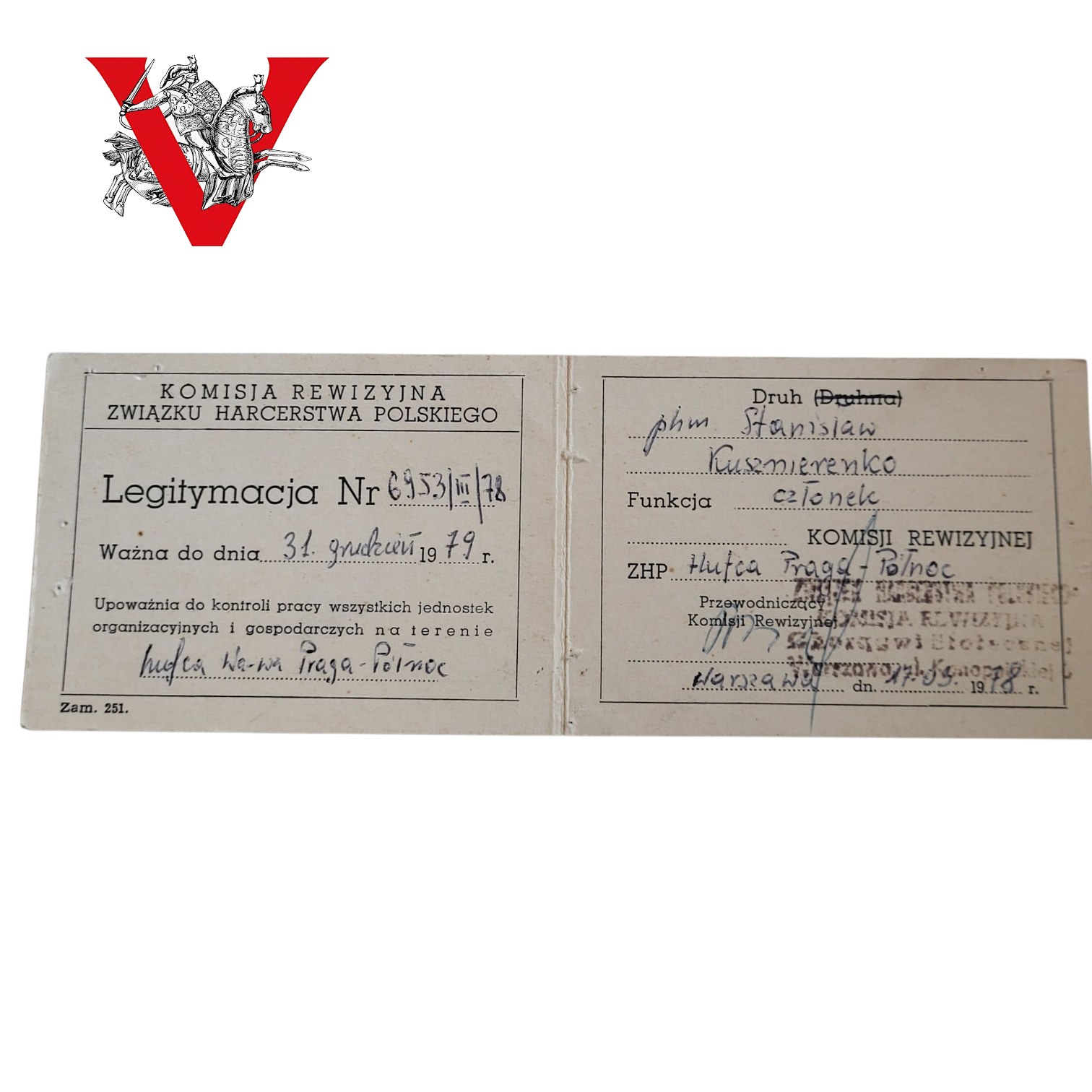 ZHP, Legitymacja Komisji Rewizyjnej, Podmarcmistrz Kusznierenko, Hufiec Warszawa Praga , 1979