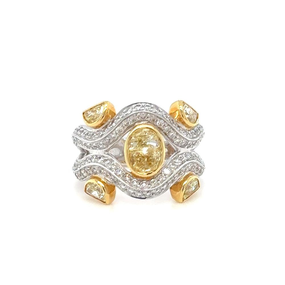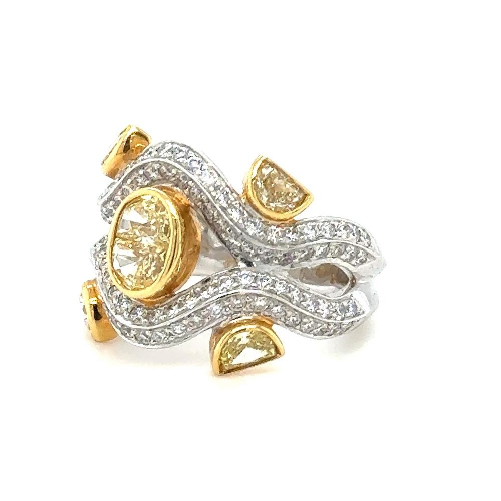 RING IN 18K WHITE AND YELLOW GOLD 11.72 GR WITH DIAMONDS (6 PIECES) FOR 1.10 CARATS COLOR NATURAL FANCY INTENSE YELLOW - CLARITY VS + DIAMONDS FOR 1.00 CARATS COLOR D-F CLARITY VS SIZE - 6.5 GEMMOLOGICAL CERTIFICATE MAROZ DIAMONDS LTD MEMBER OF ISRAEL DIAMOND EXCHANGE - HR2010