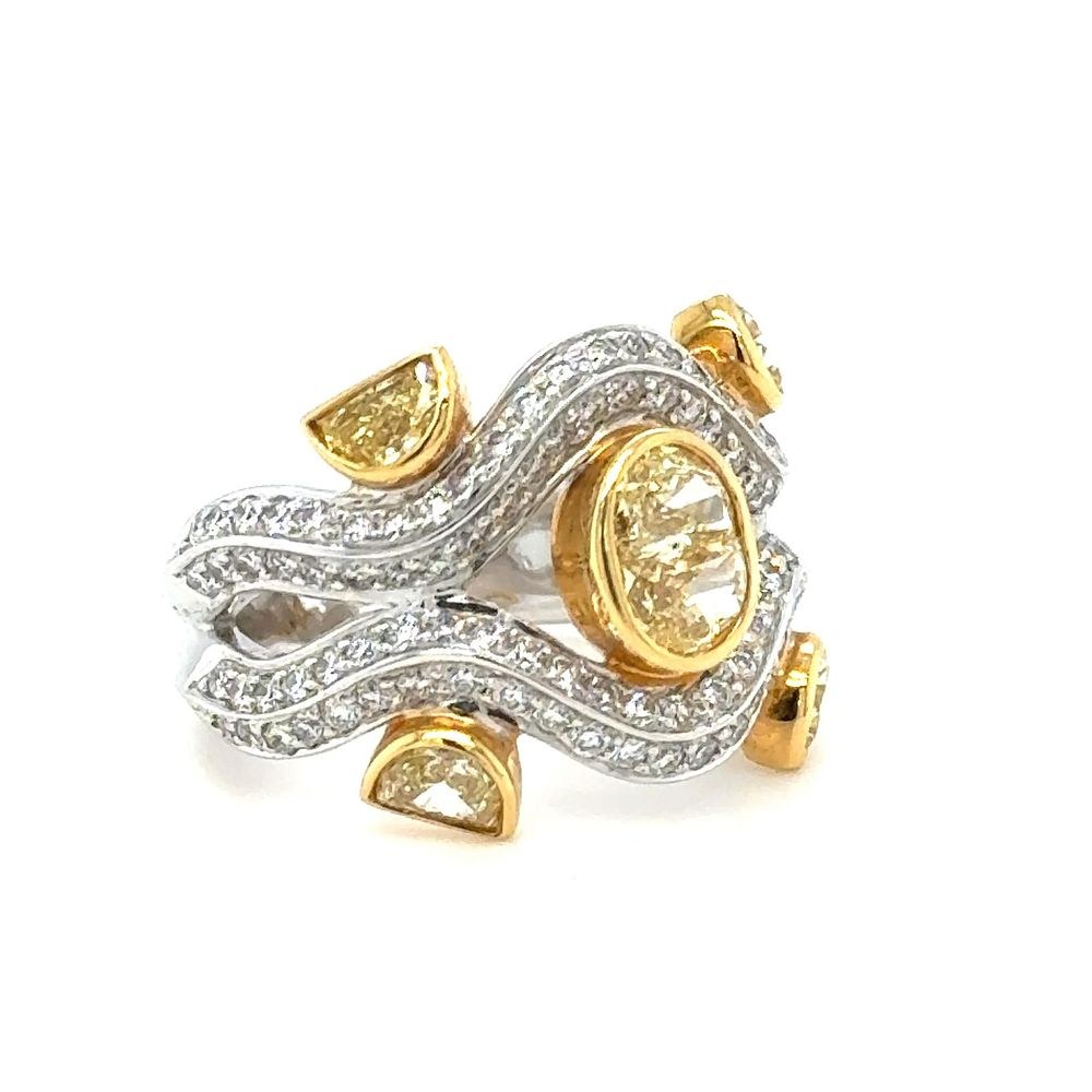 18K WHITE AND YELLOW GOLD RING 11.72 GR WITH FANCY DIAMONDS - HR2010