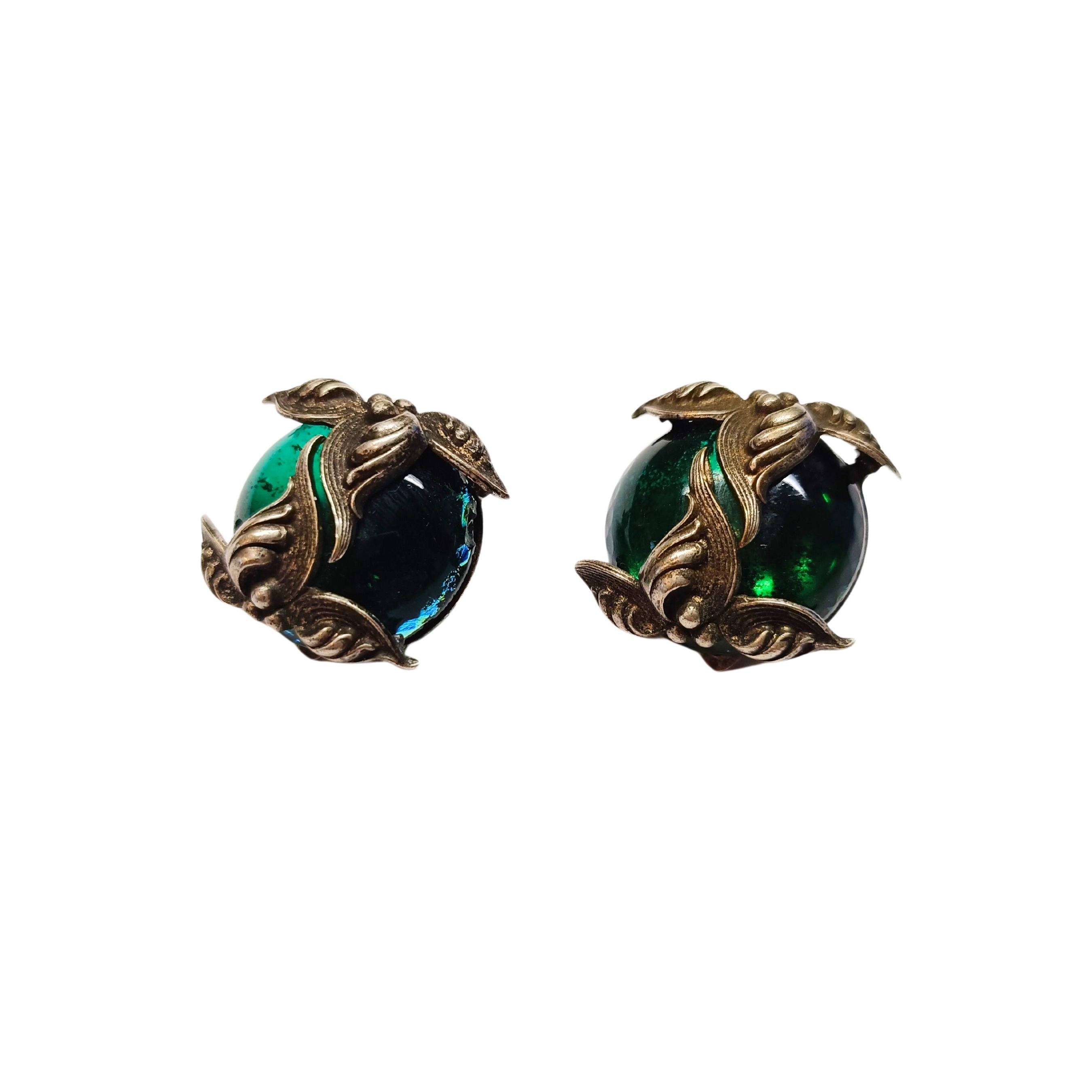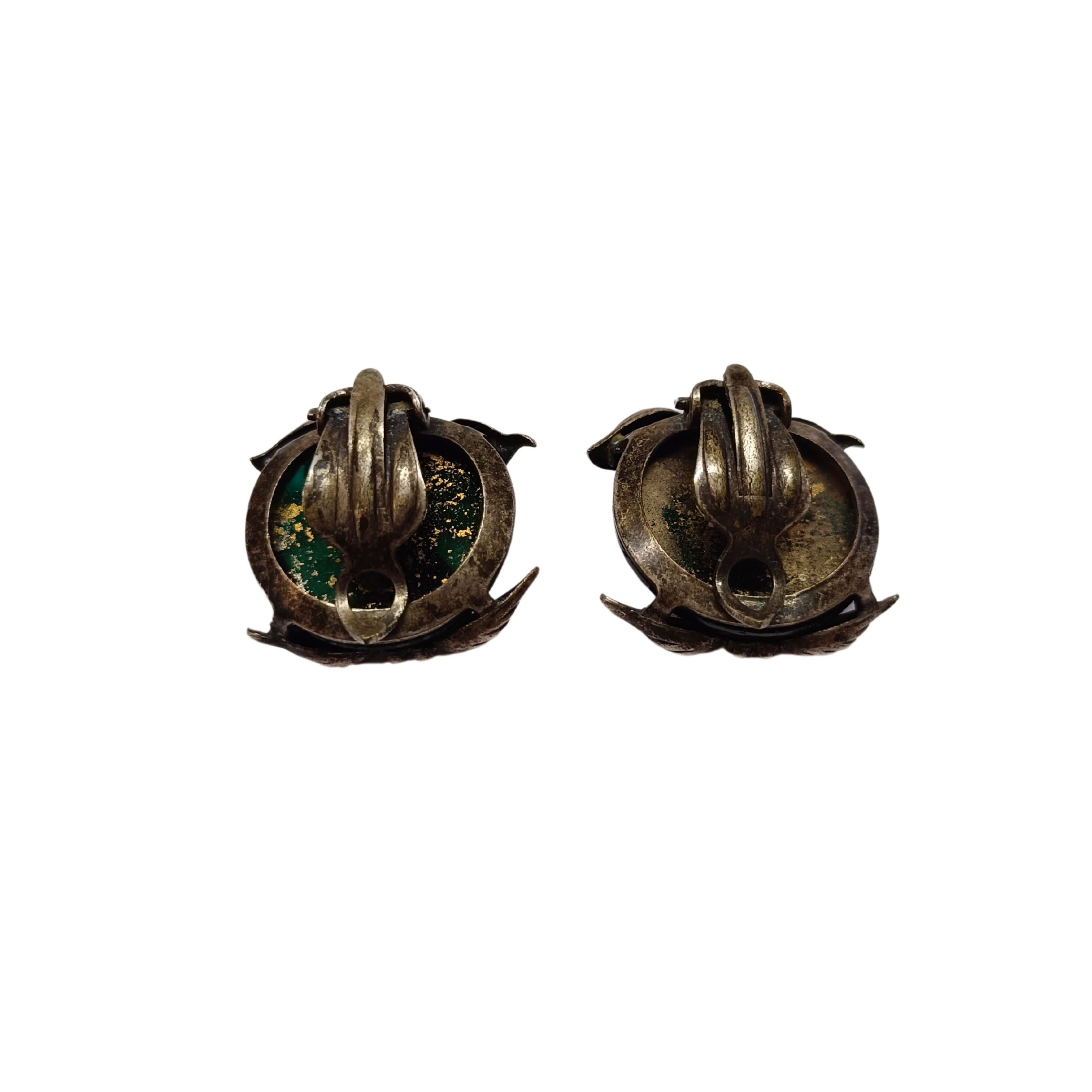 Eleganckie klipsy z zielonym oczkiem w stylu vintage.