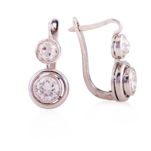 platyna, 2 szt. diamentów ł. ~ 0,80 ct H/Si1, 2 szt. diamentów ł. ~ 0,64 ct J/Si-P1, masa: 4,09 g; wym.: 1,7 x 0,8 cm