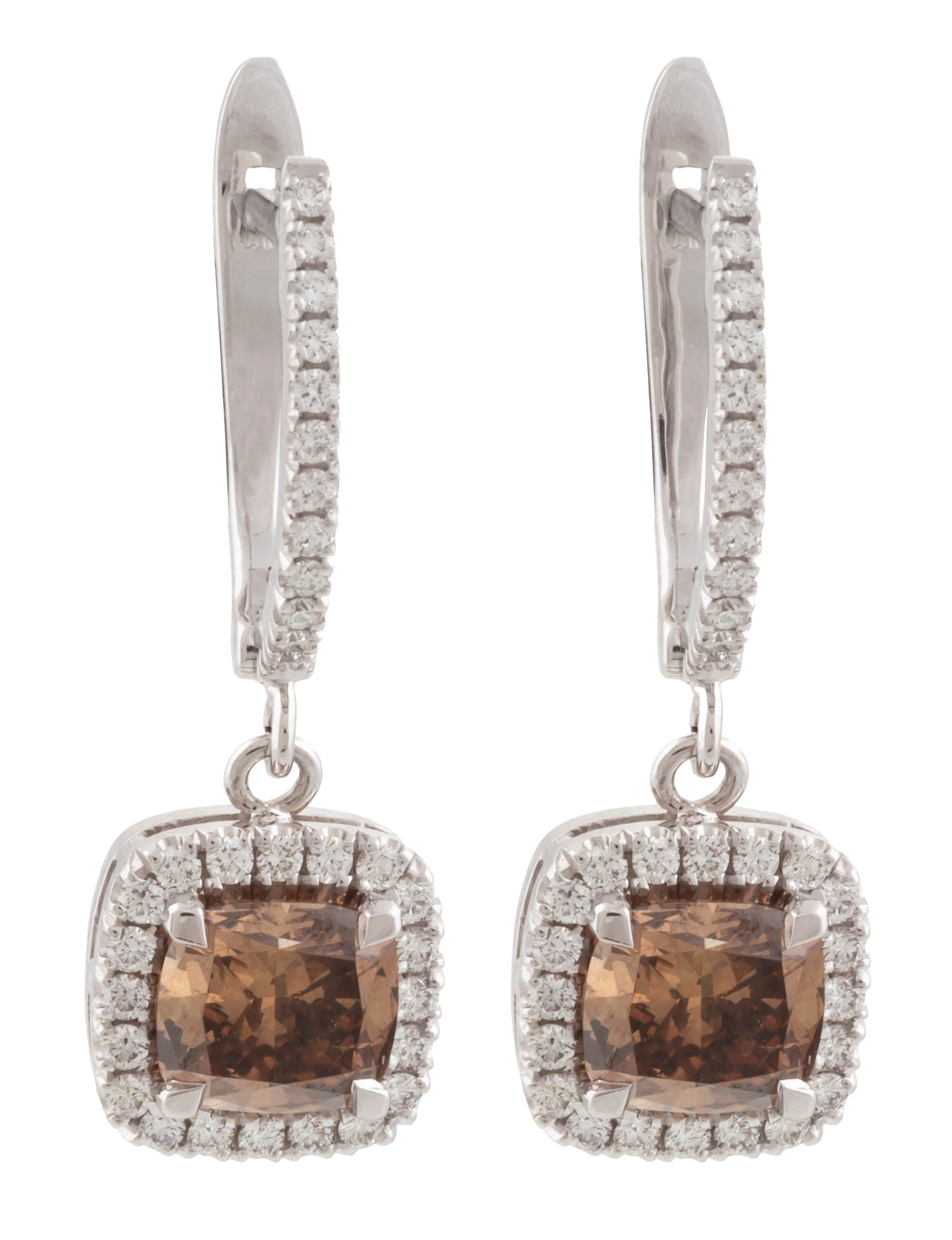 złoto, pr. ok. 0,585, m. 4,2 g, 2 szt. diamentów łącznie ok. 2,08 ct , koniakowy brąz/SI, 64 szt. brylantów łącznie ok. 0,32 ct, G-H/VS