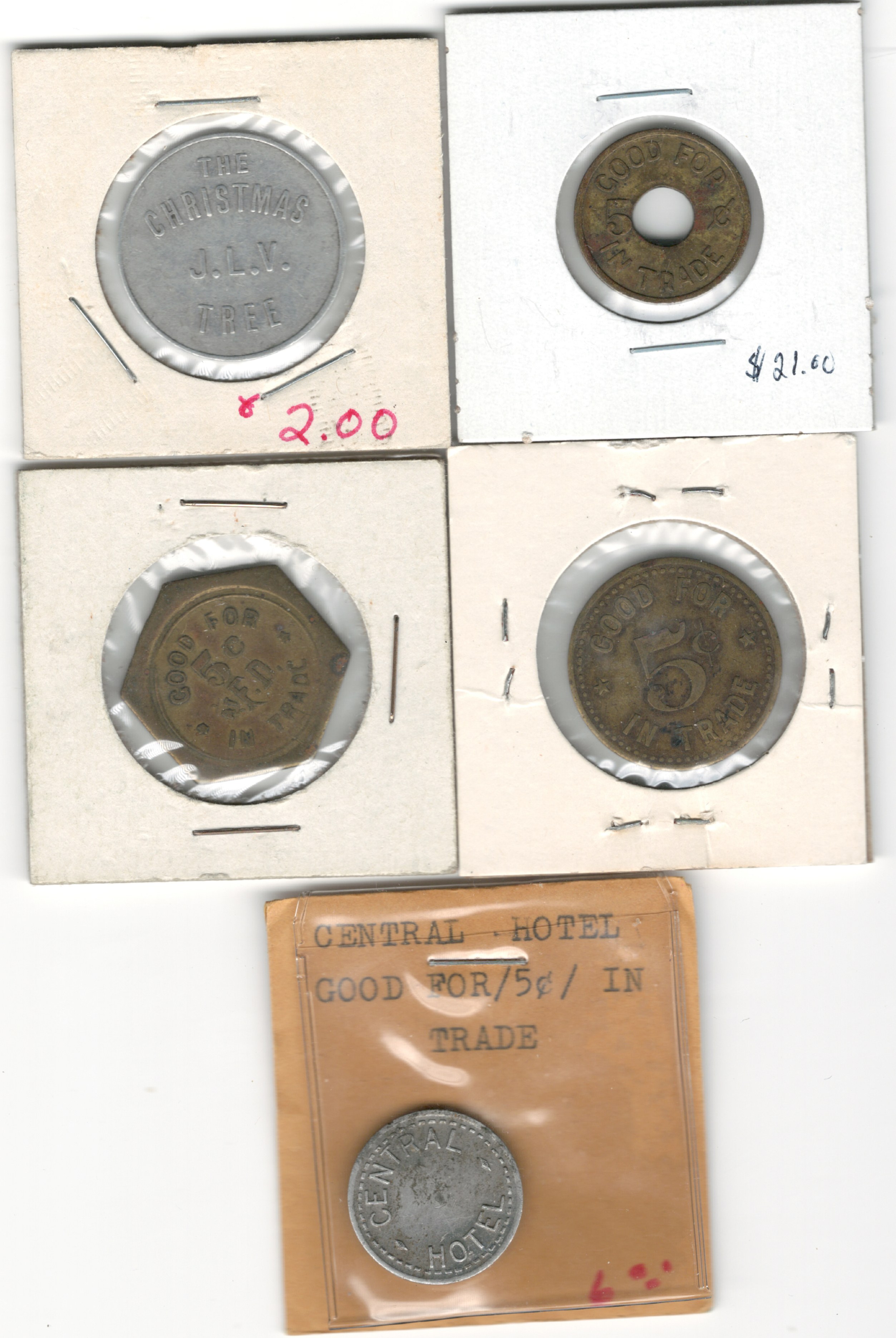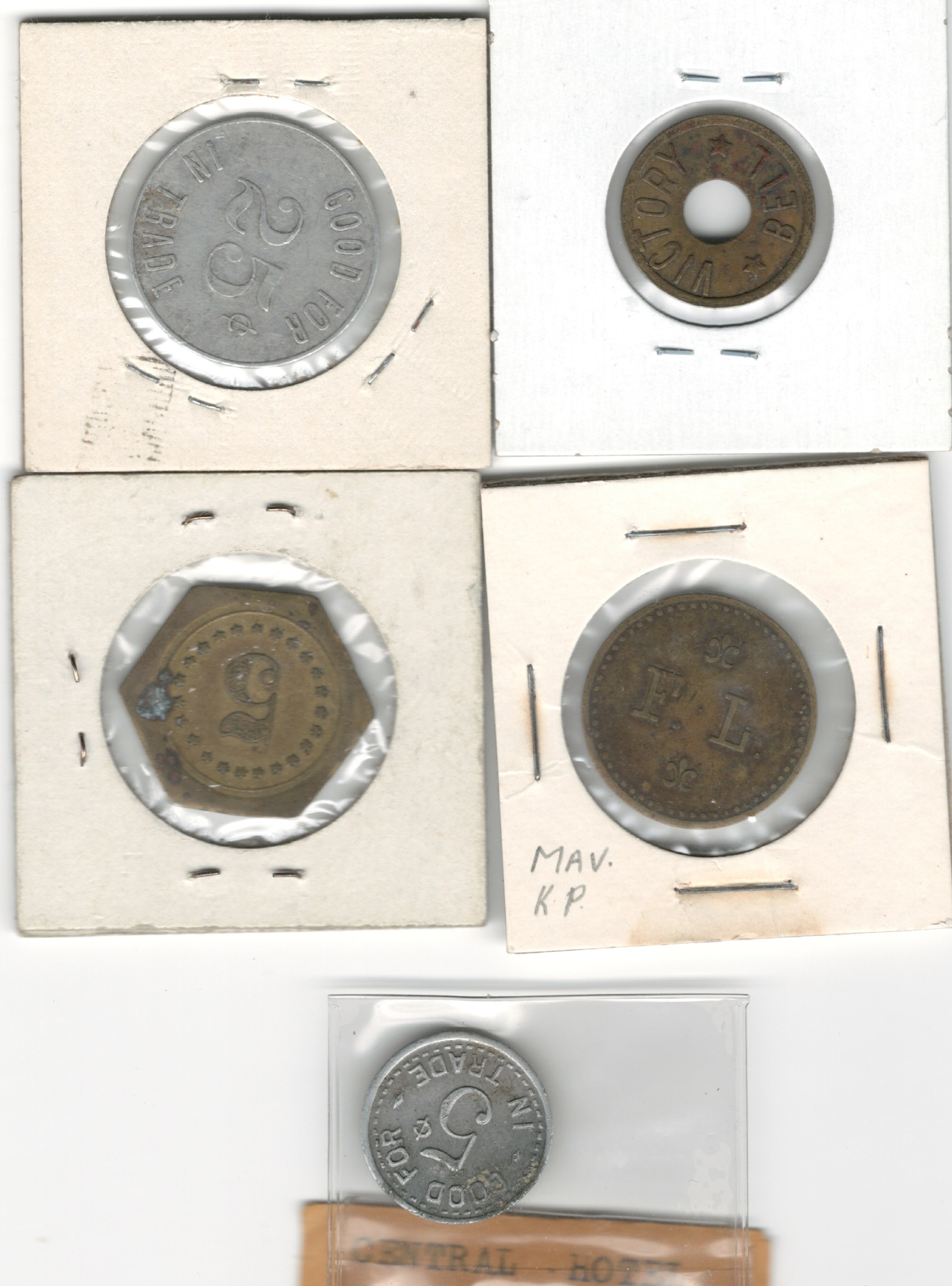 Good For In Trade Token Lot. Central Hotel Etc. (5 pieces)