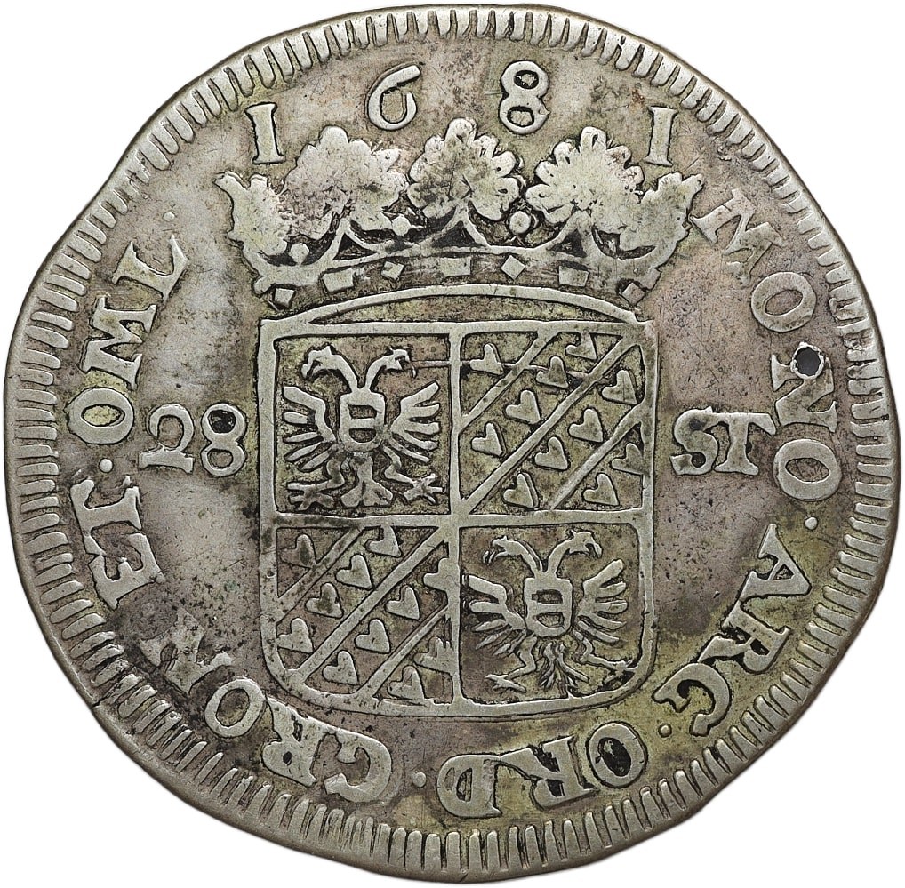Wyraźne ślady obiegu, nieduża perforacja przy obrzeżu.