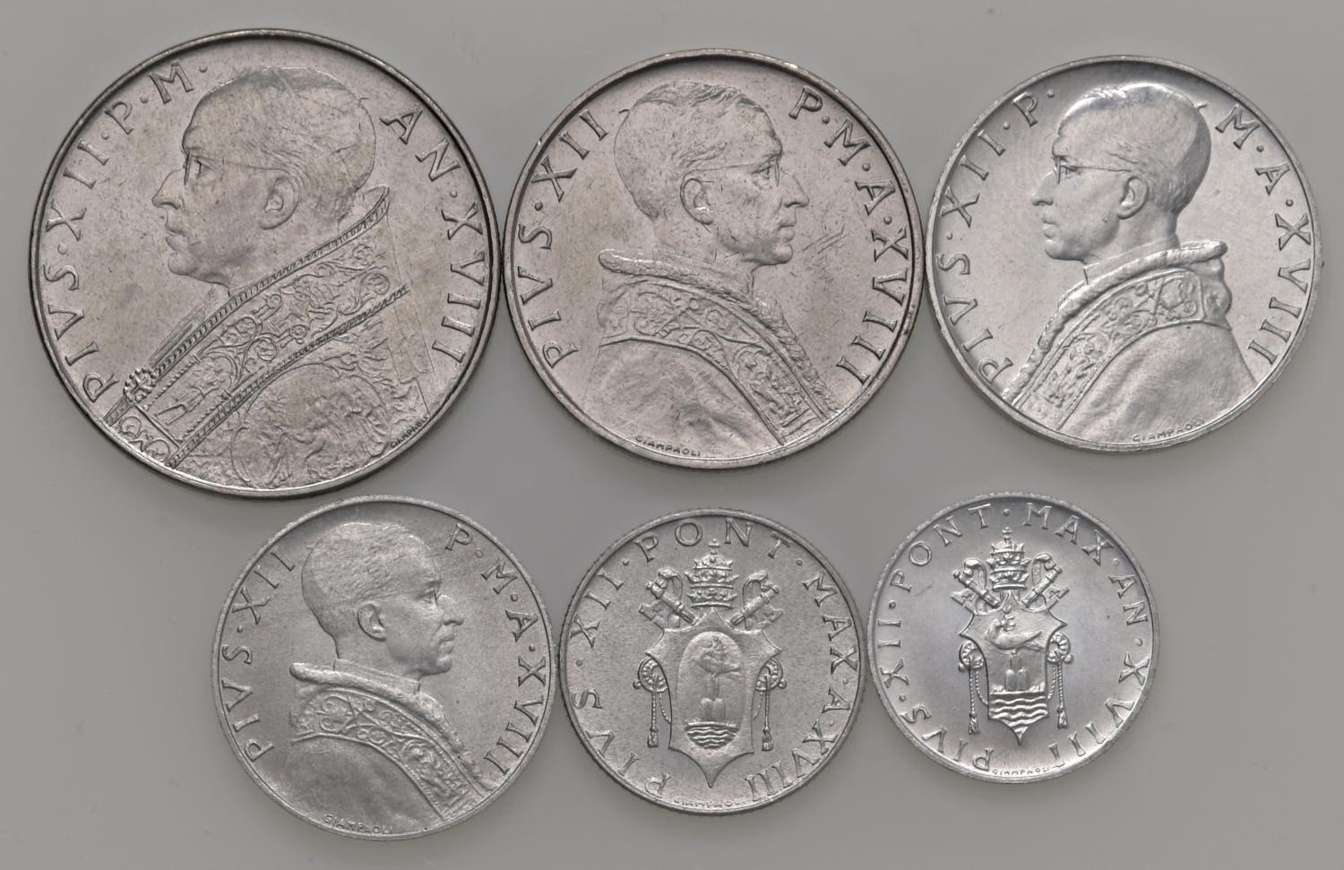 Papal coins - Pio XII (1939-1958) Lotto di sei monete come ...