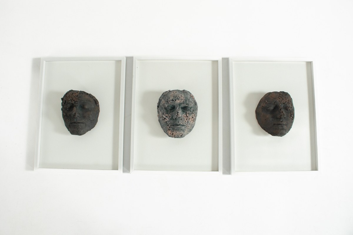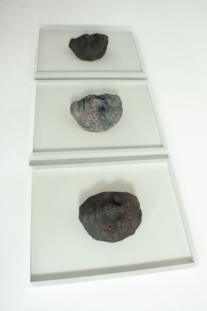 ceramika, sklejka, 3 prace o wymiarach: 42 x 32 cm, sygn. na odwrocie