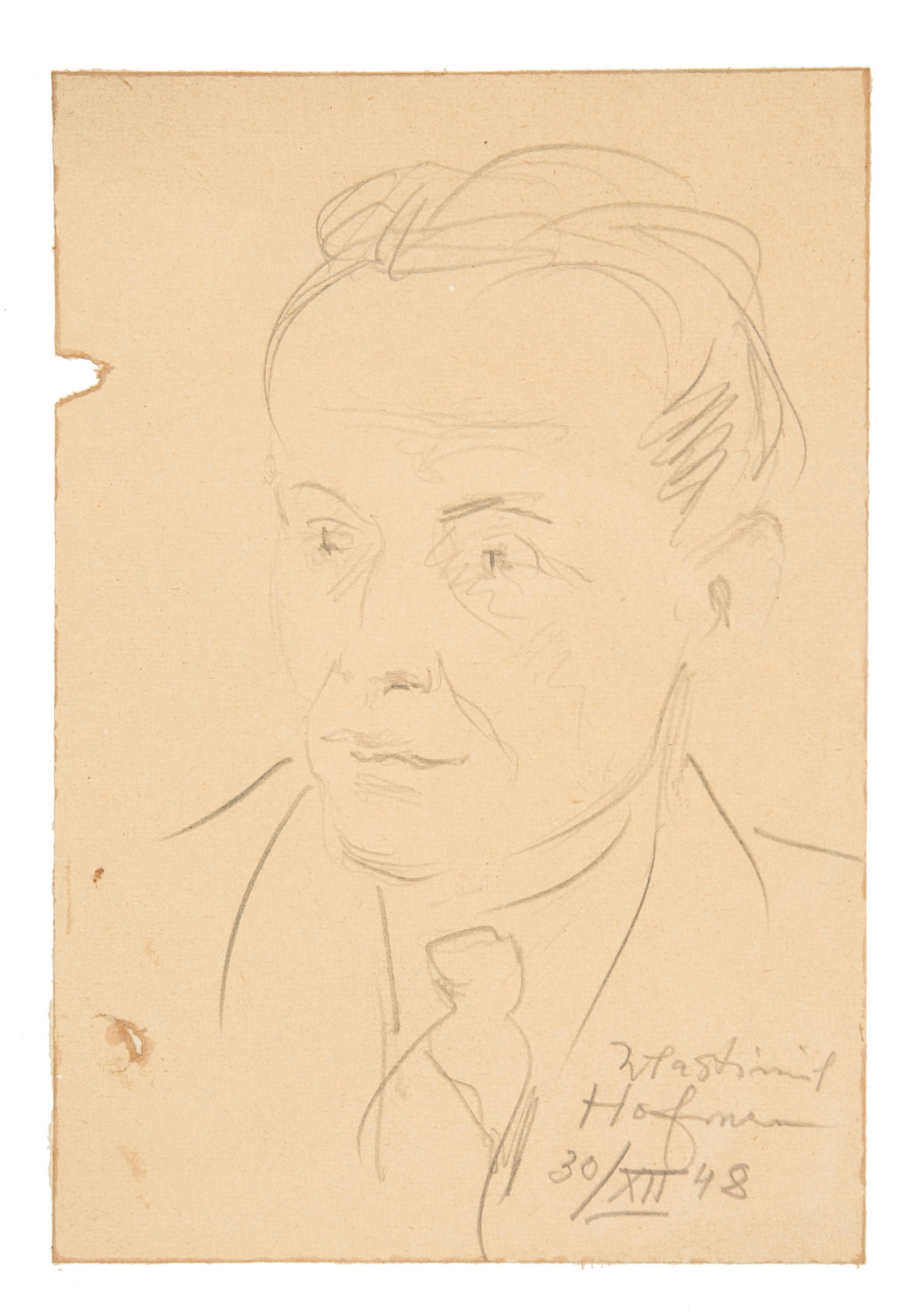 ołówek, papier, 15 x 10 cm w świetle passe-partout, sygn. i dat. p.d.: Wlastimil Hofman/30/XII 48, na odwrocie dopisek: Portrecik adwokata Karola Pędowskiego