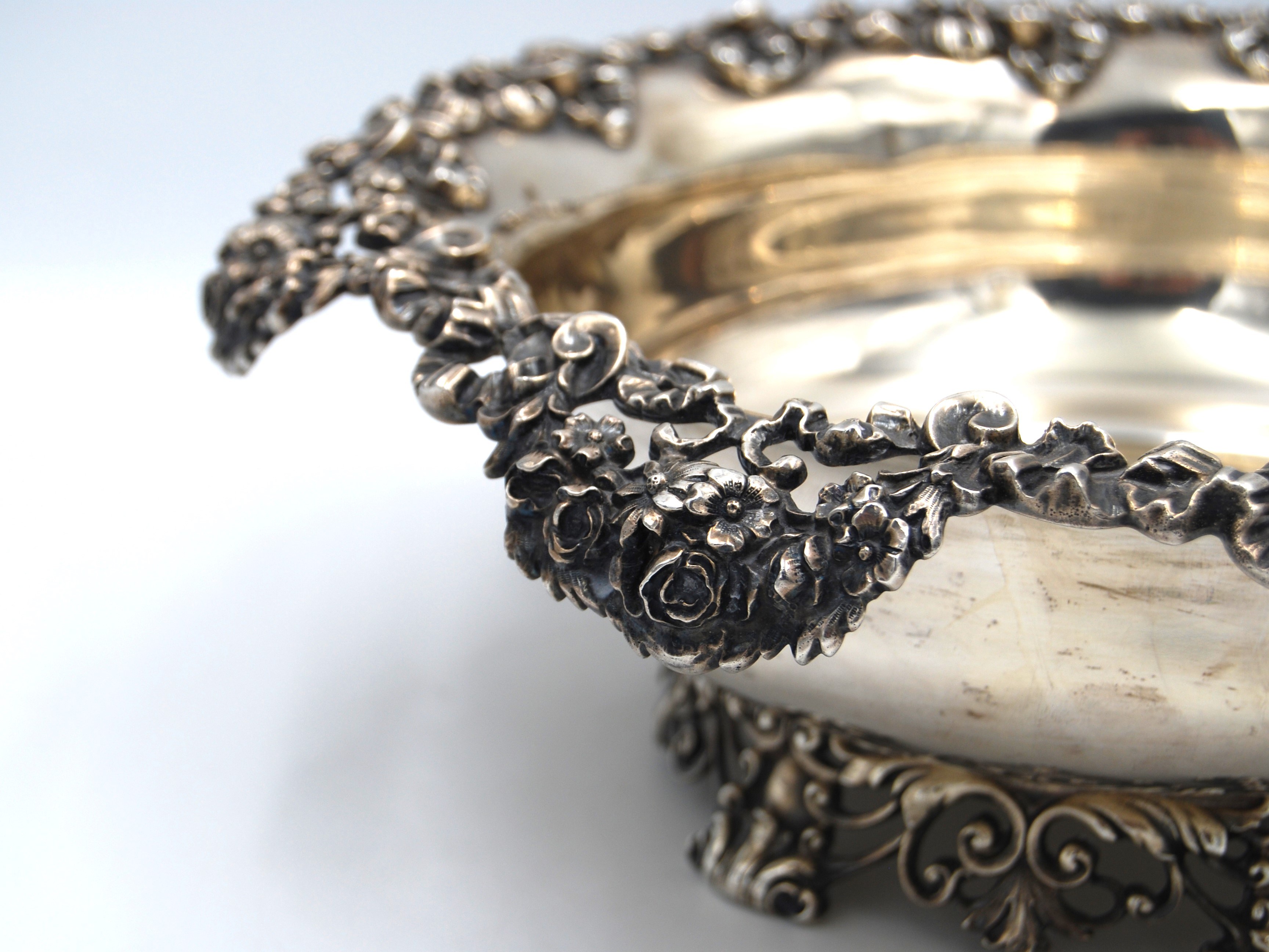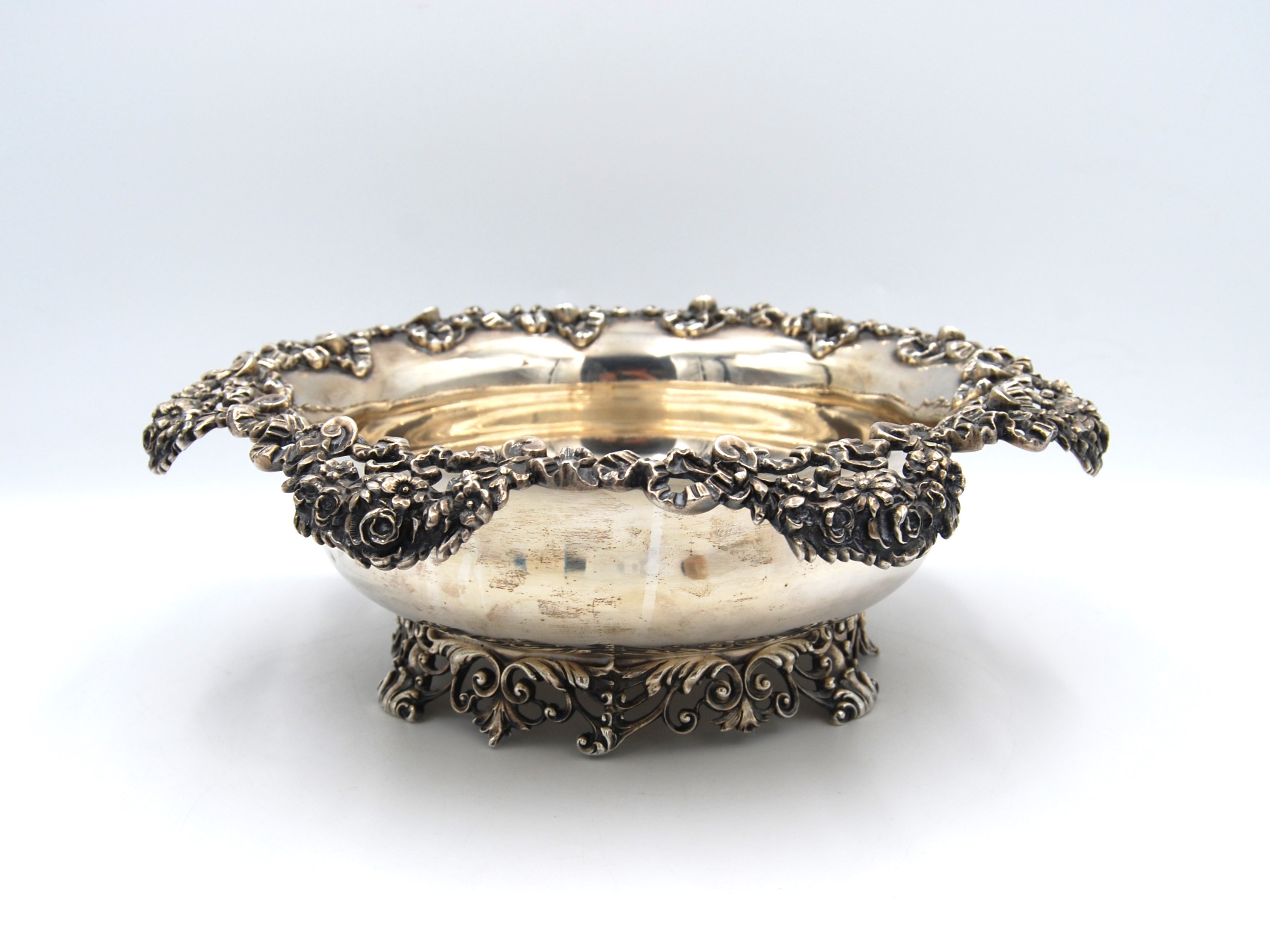 Anglia, XIX w., Srebro pr. 925, wysokość: 9,5 cm, Średnica: ok. 27 cm. Waga 1040 g.