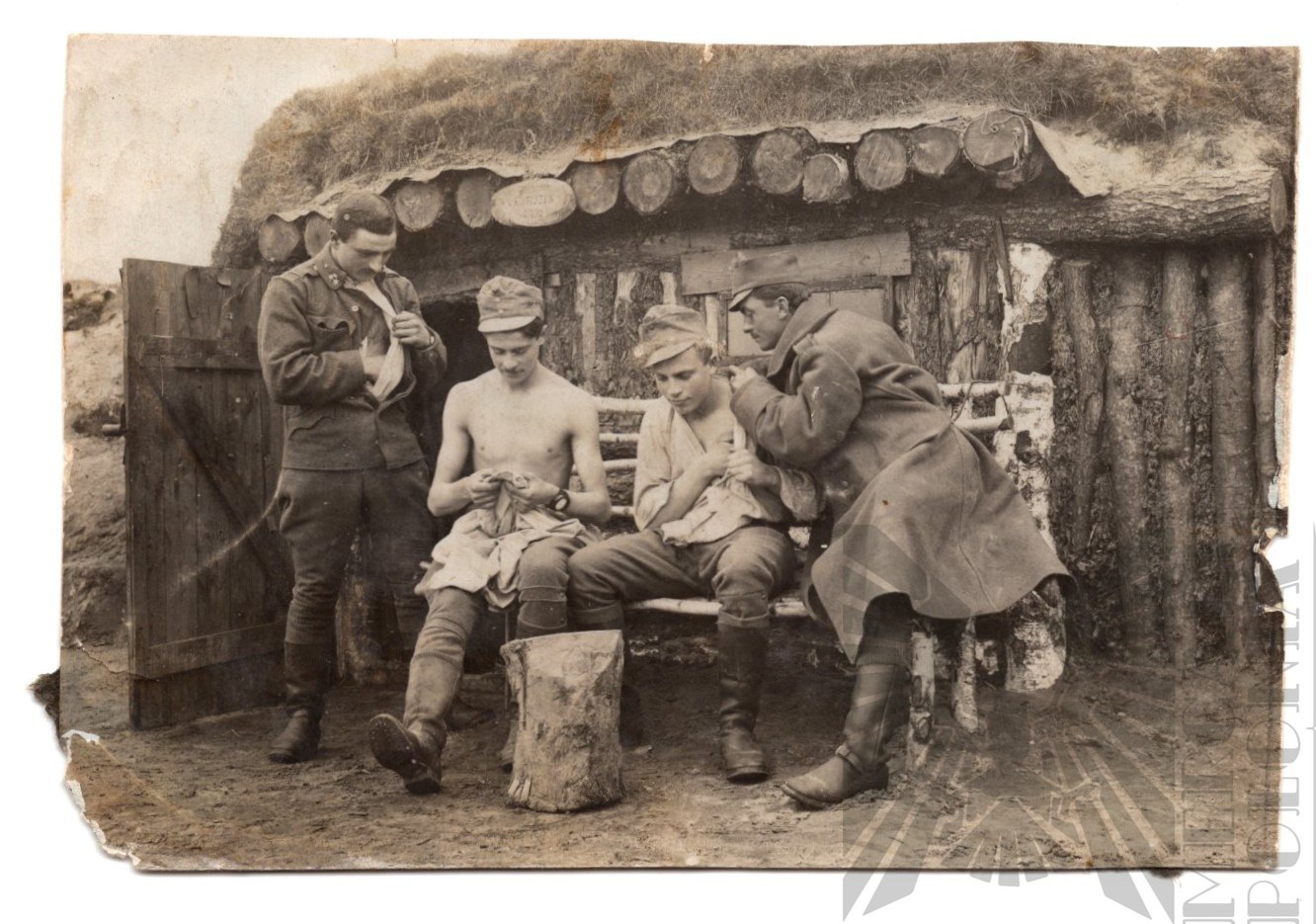 Fotografia żołnierzy Armii Austro-Węgierskiej podczas odpoczynku, na rewersie fotografia opatrzona datą 1916.
