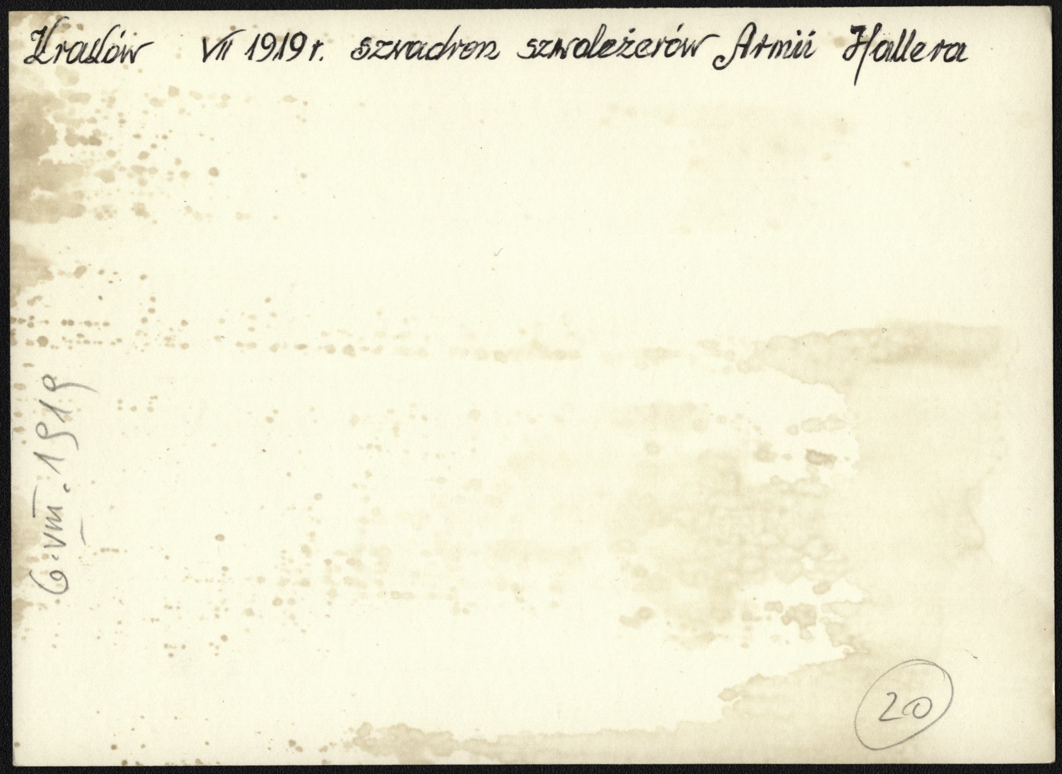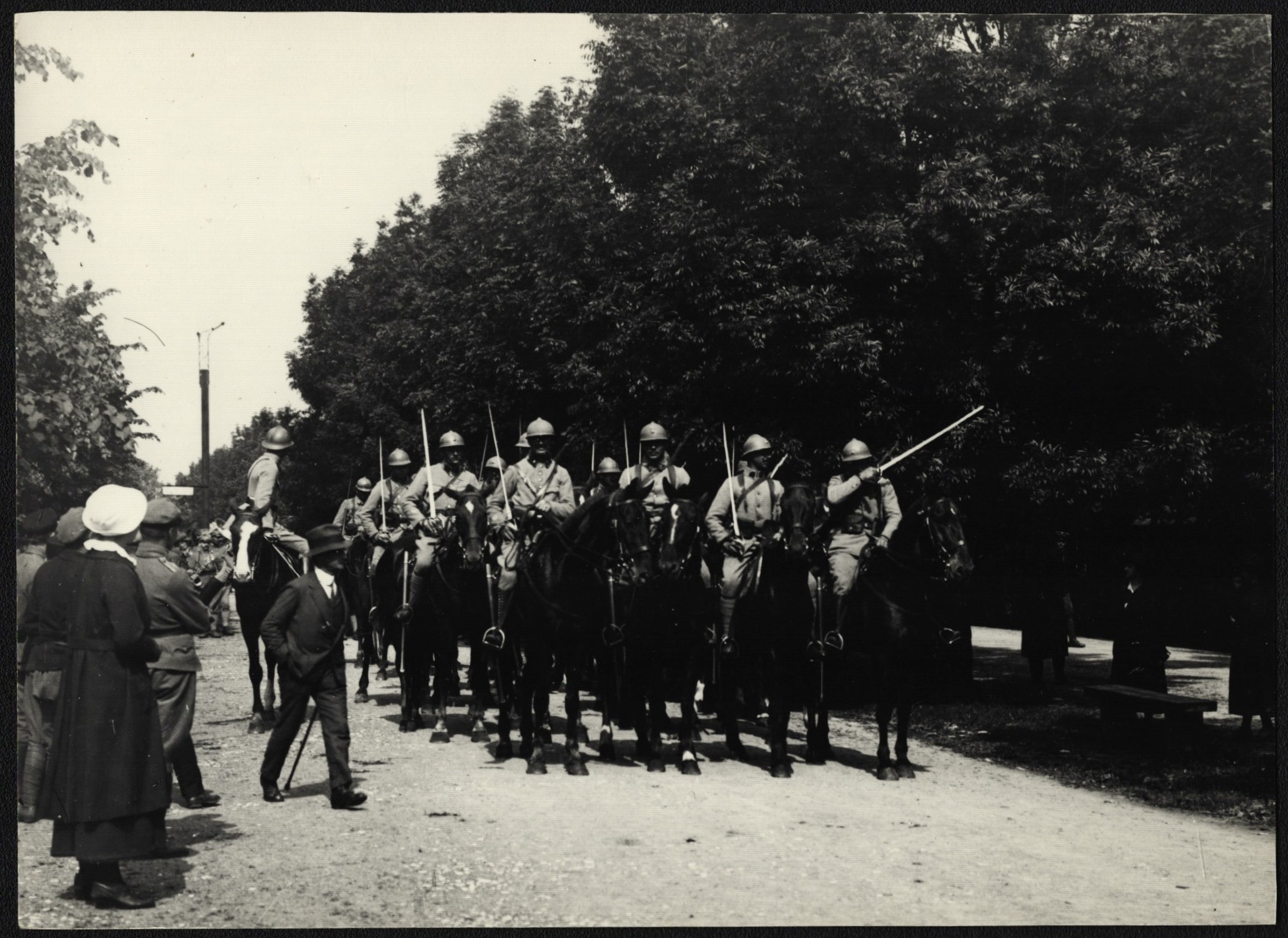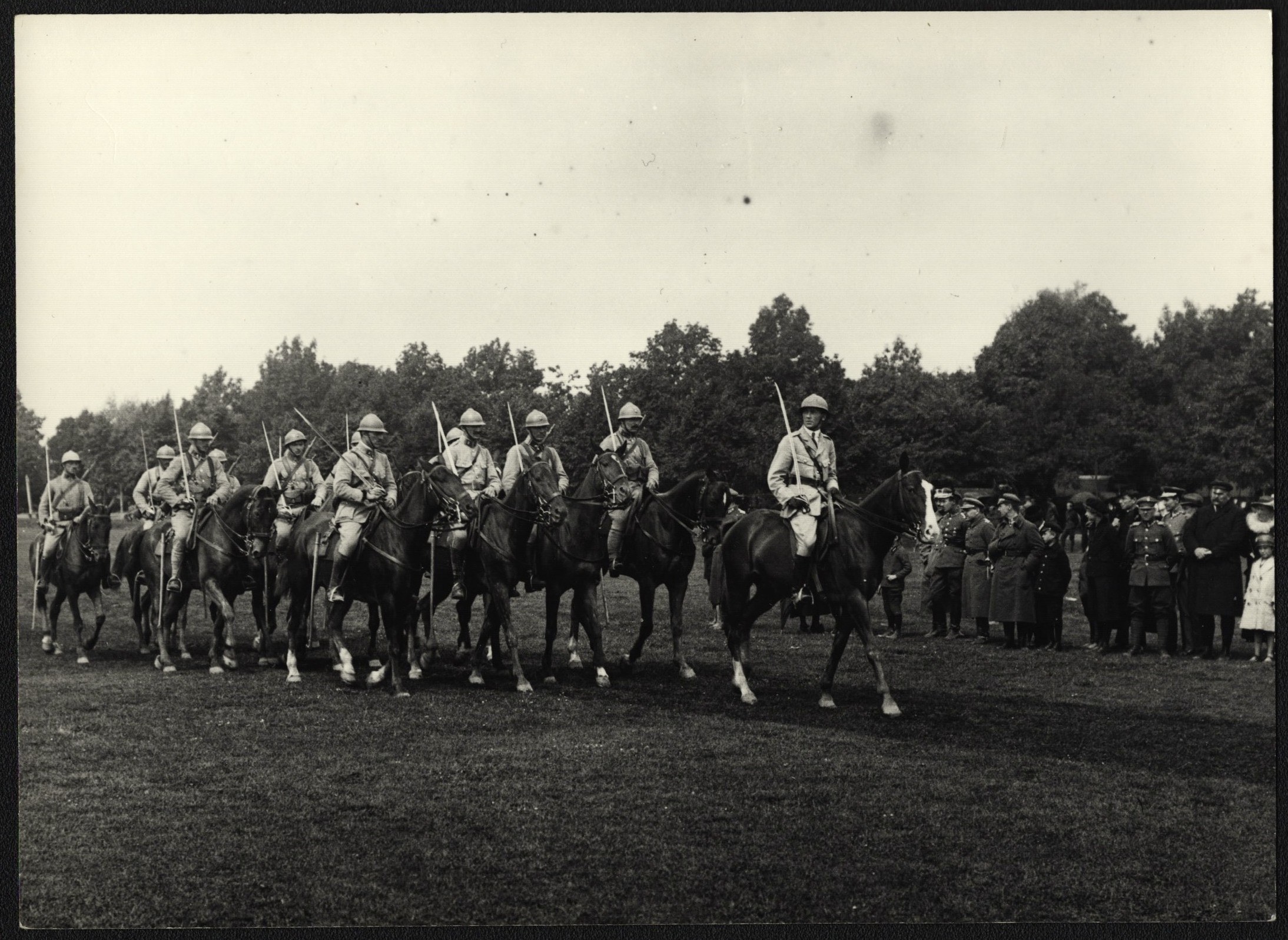 Oddział szwoleżerów Błękitnej Armii podczas nieznanej uroczystości. Ca 1919 r. Fotografia o wymiarach 13 x 18 cm. (20)