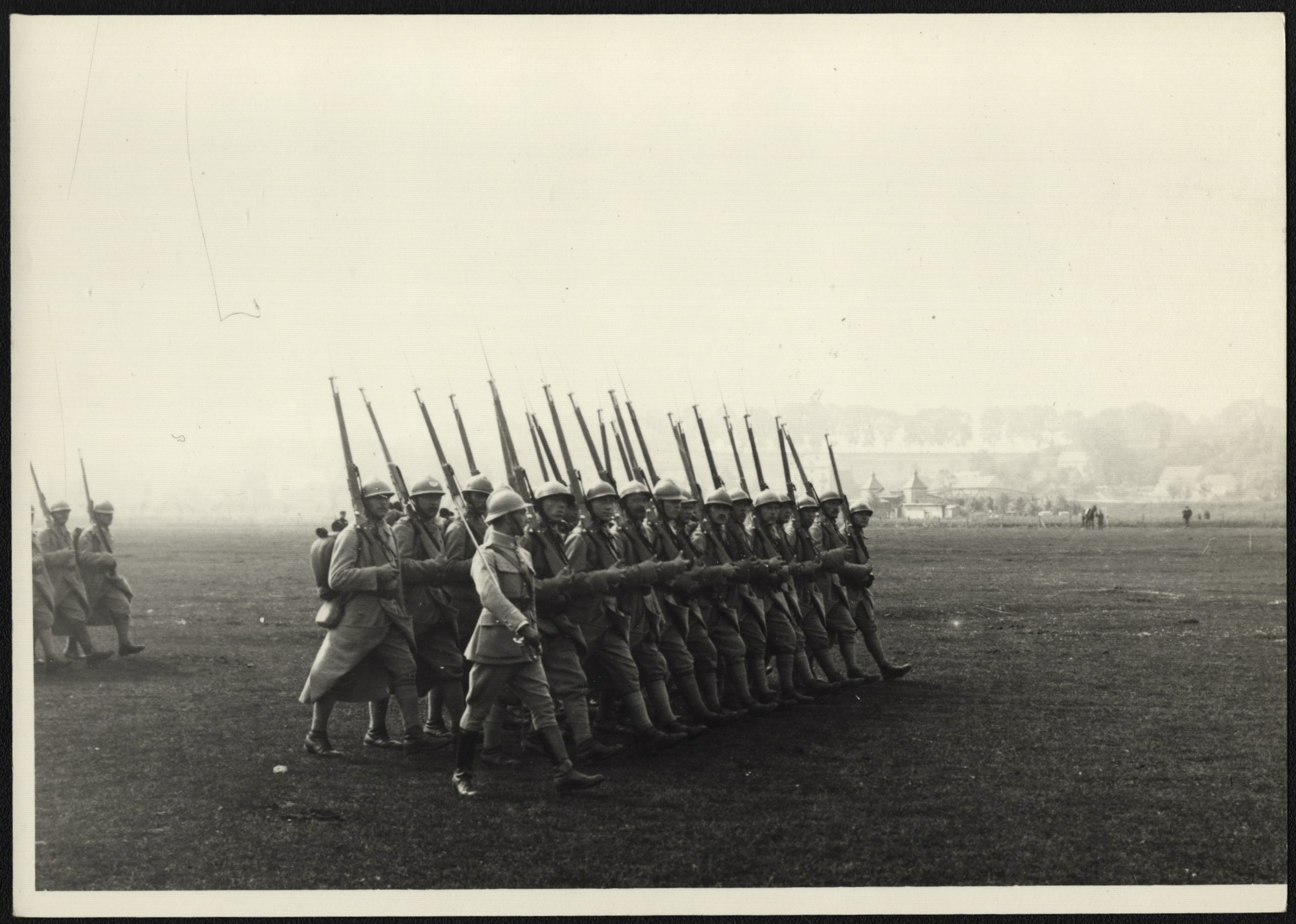 Maszerujący oddział Błękitnej Armii. Ca. 1919. Fotografia o wymiarach 13 x 18 cm. (18)