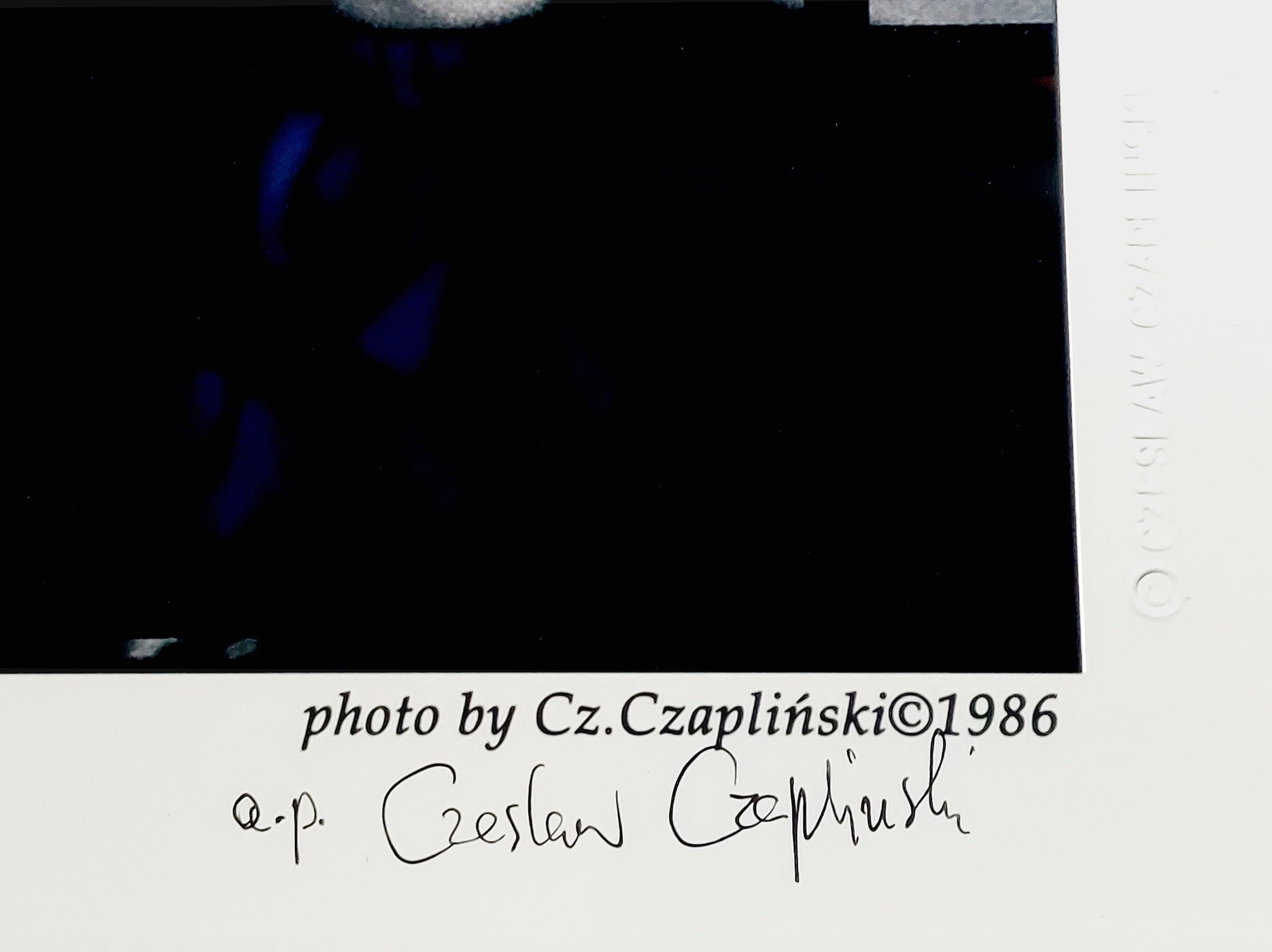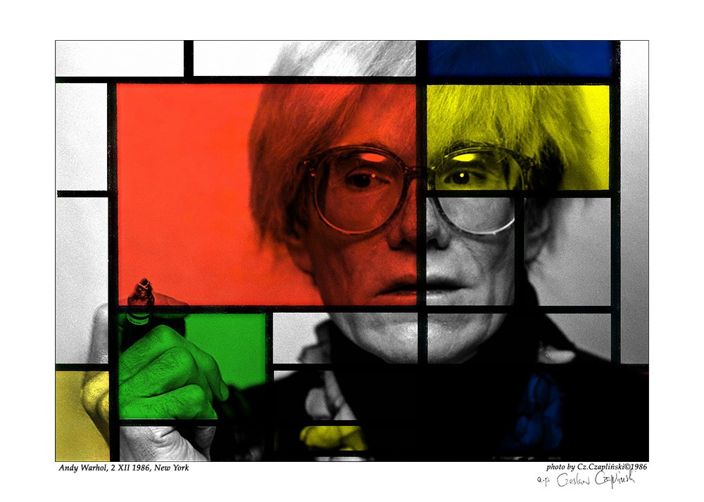 Sygnatura: front, lewy dolny róg: Andy Warhol 2 XII 1986 New York, prawy dolny róg: photo by Cz. Czapliński 1986 oraz własnoręczny podpis artysty Czapliński i odcisk suchej pieczęci artysty.