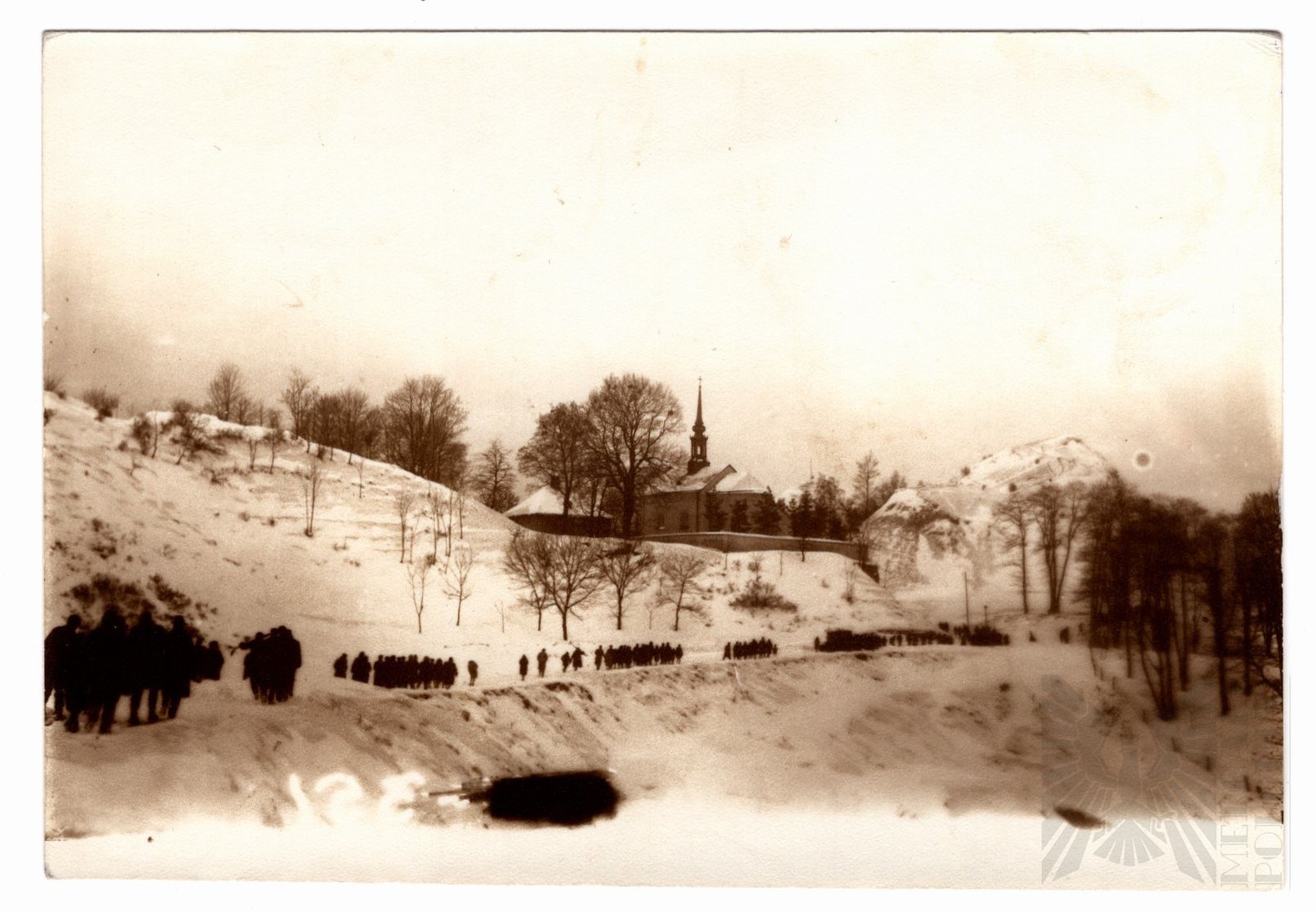 II RP, Lwów (Lemberg/Leopolis) - Fotografia Przemarszu Wojsk; Widok Kościoła Św. Wojciecha - Późniejsza Odbitka (Lata 80. XX w.) Z Kliszy Przechowywanych w Archiwum we Lwowie