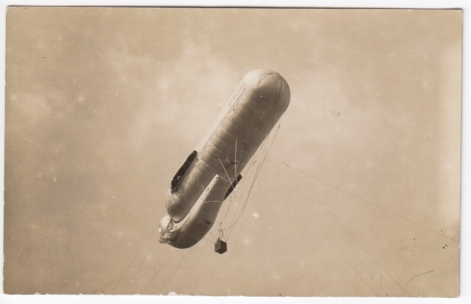 Russian Empire Photocard – Observation Balloon “ДРАКОНЪ” (Dragon) in Flight, ca. WWI Era