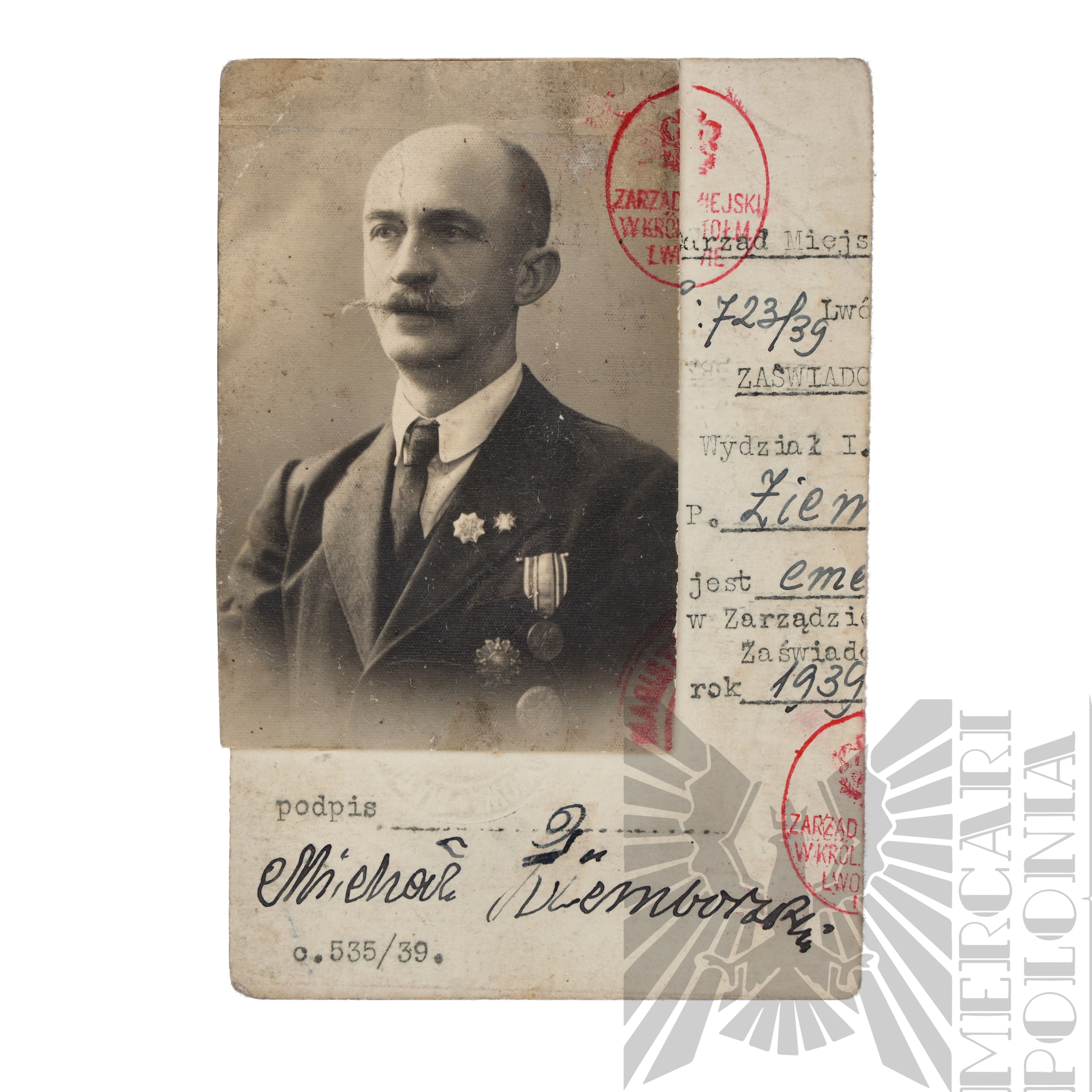 II RP Fotografia z Fragmentem Legitymacji - Medal za Wojnę 1919-1921 Polska Swemu Obrońcy, Odznaka Obrońcy Kresów Wschodnich,