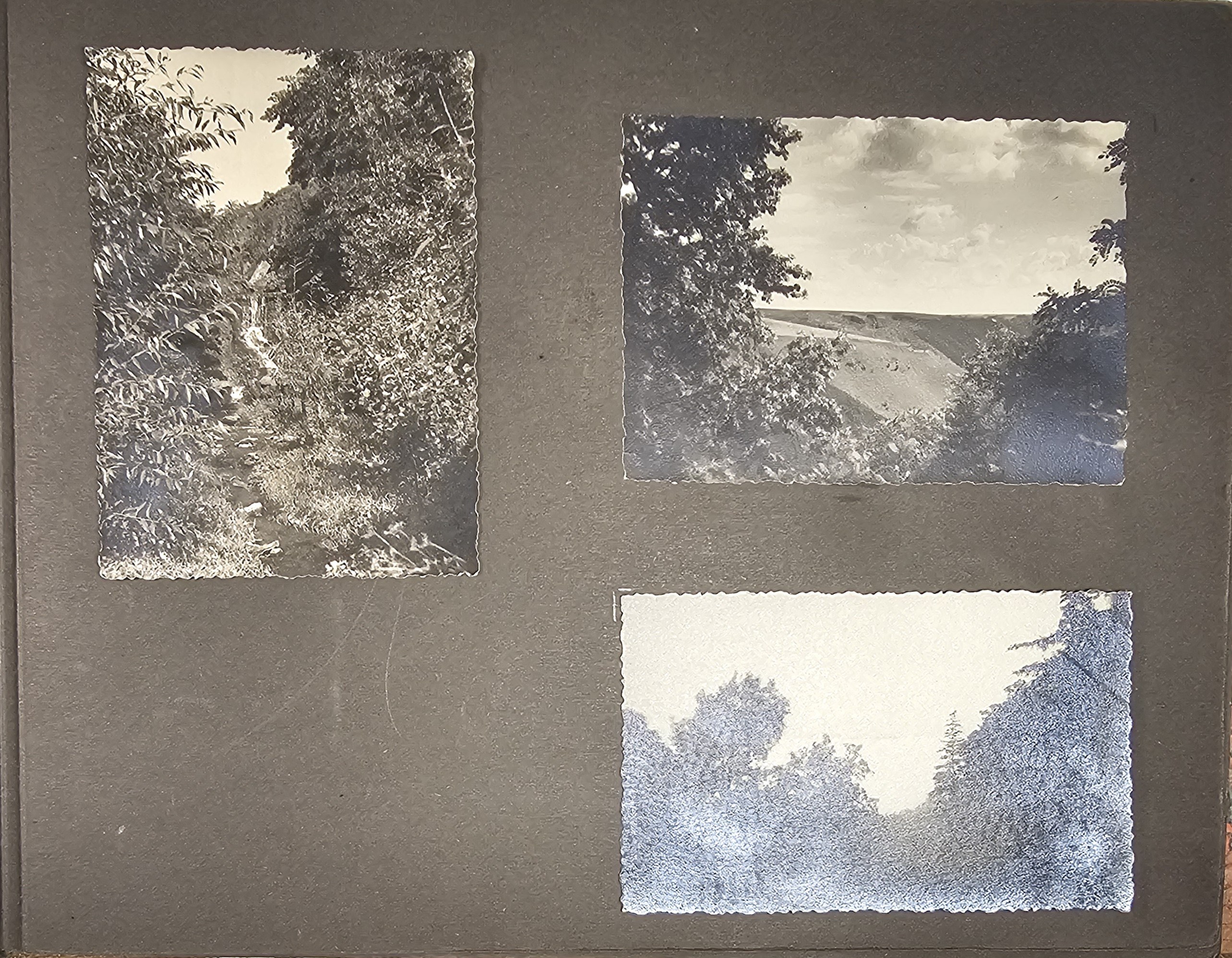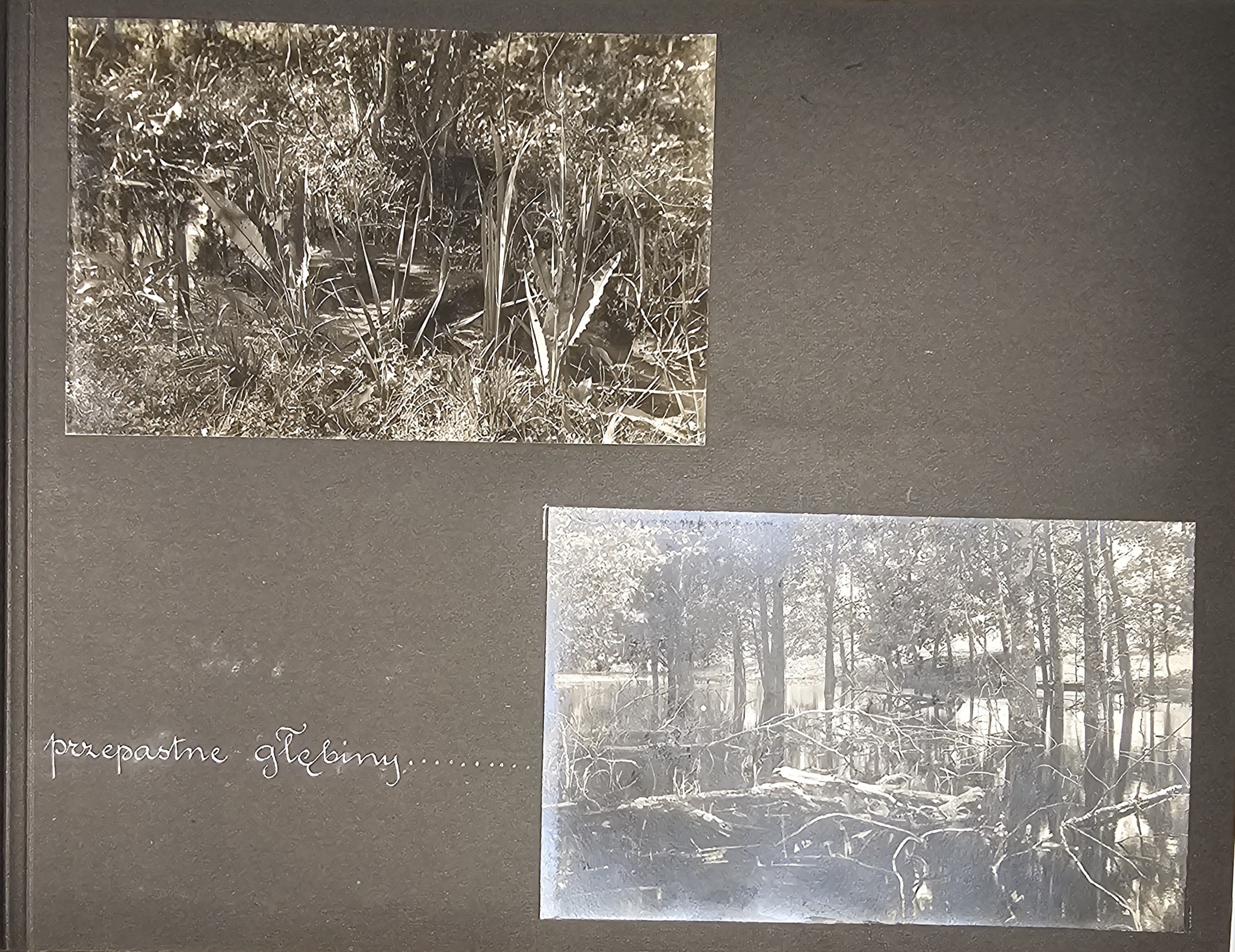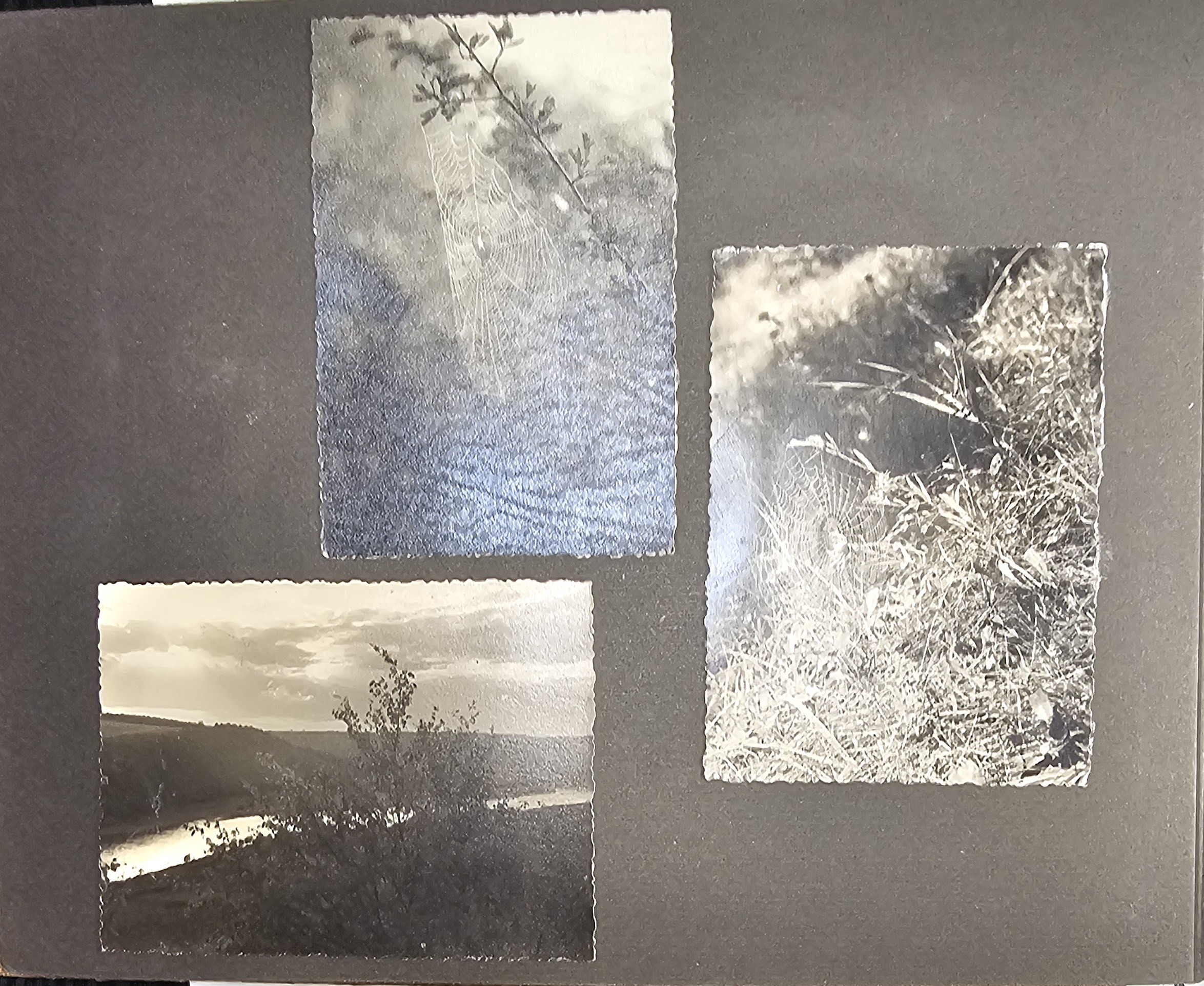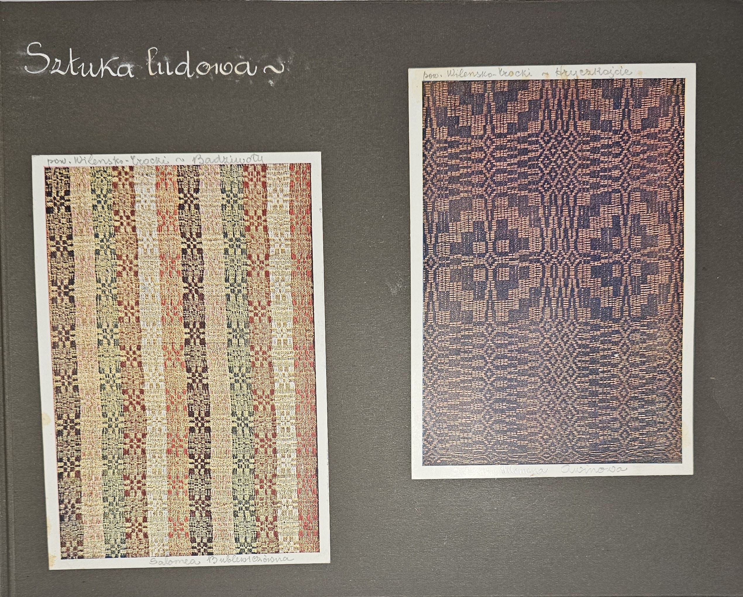 Album o wym. zewn.: 295 x 215 mm, karty o wym.: 260 x 205 mm. 12 kart, 38 o wym. pocztówkowym ok.: 140 x 90 mm oraz 14 fotografii o wym. ok.: 80 x 105 mm, razem 52 fotografie, niektóre sygnowane fot. L. Wysocki, Wilno. Wszystkie fotografie (pocztówki) sfotografowane. Stan dobry.