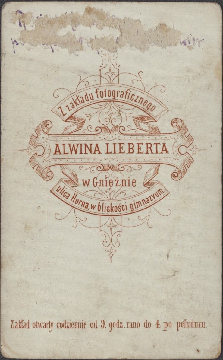 Fotografia albuminowa na oryg. podkładzie atelier, wym. 10 x 6,2 cm.